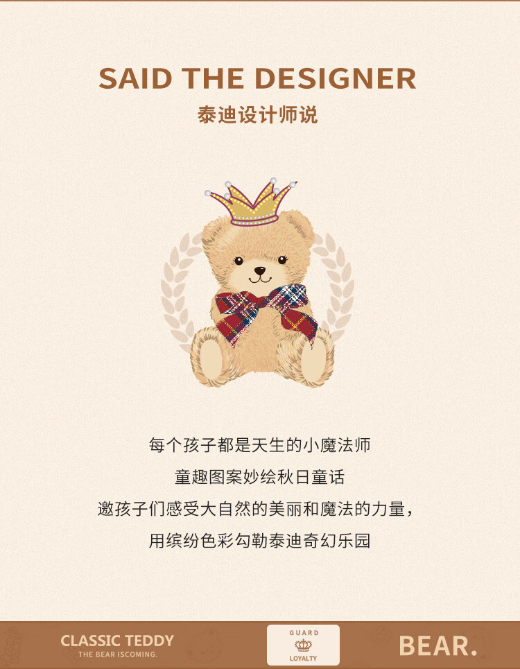 Classic Teddy儿童加绒卫衣套装冬季保暖加厚卫衣卫裤两件套中小童 卡通泰迪米白军绿 80