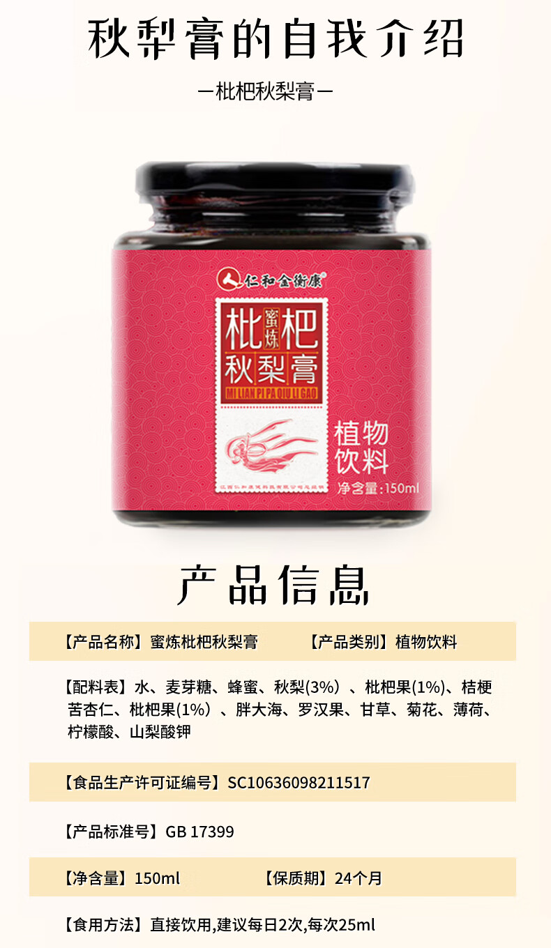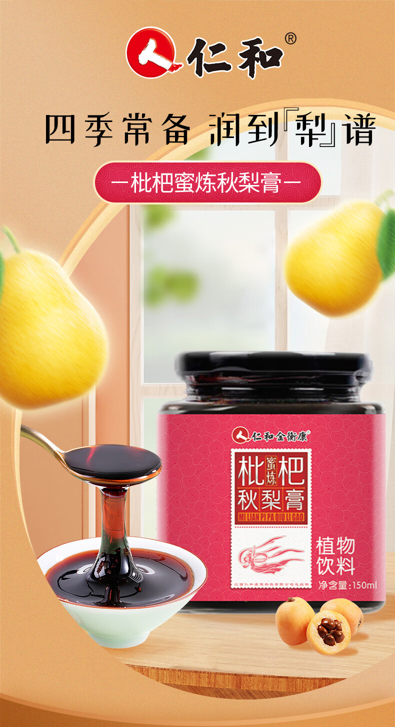 仁和蜜炼秋梨枇杷膏150ml/罐胖大海罗汉果甘草菊花儿童临期26年4月 150ml*1罐 【体验装】