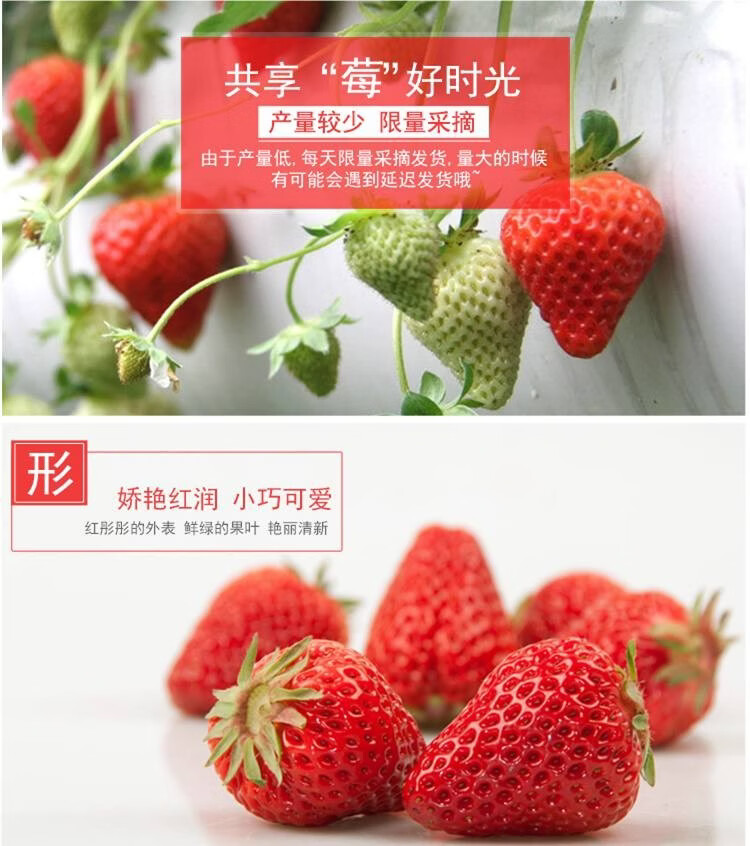 京典光年大凉山草莓 99红颜草莓 四川现摘草莓新鲜水果 250g/24枚*4盒