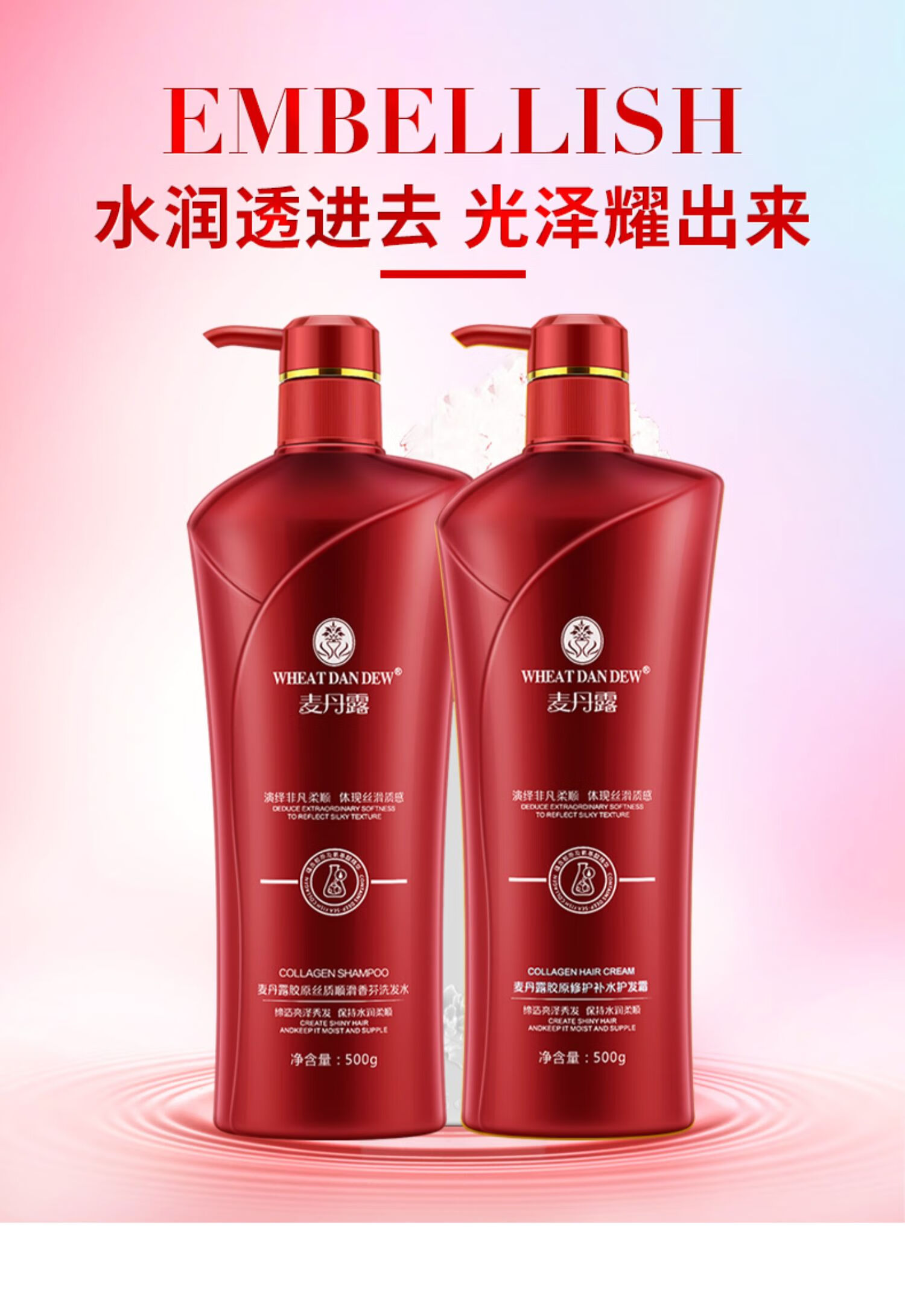 麥丹露胶原氨基酸洗发水柔顺去屑控油蓬松洗头膏套装正品官方品牌 胶原控油[洗护套装]750g*2