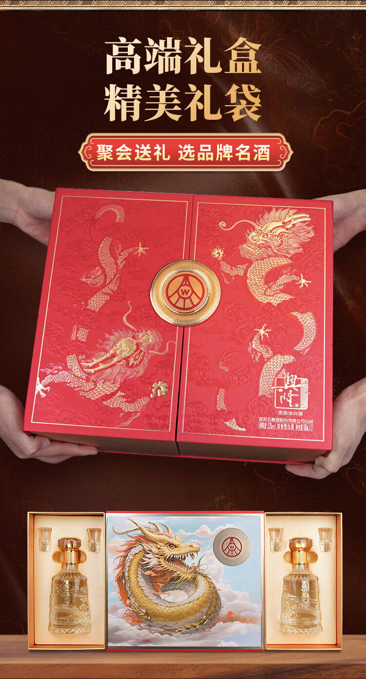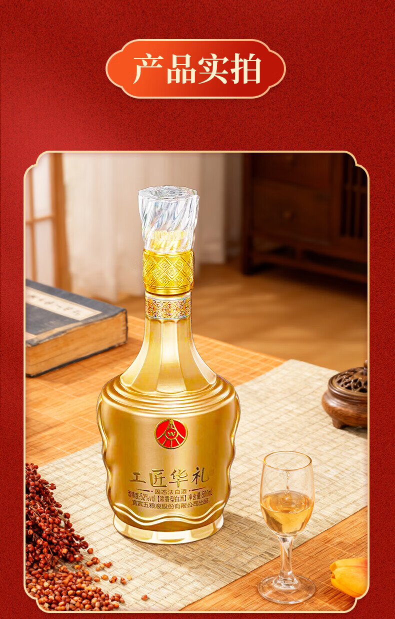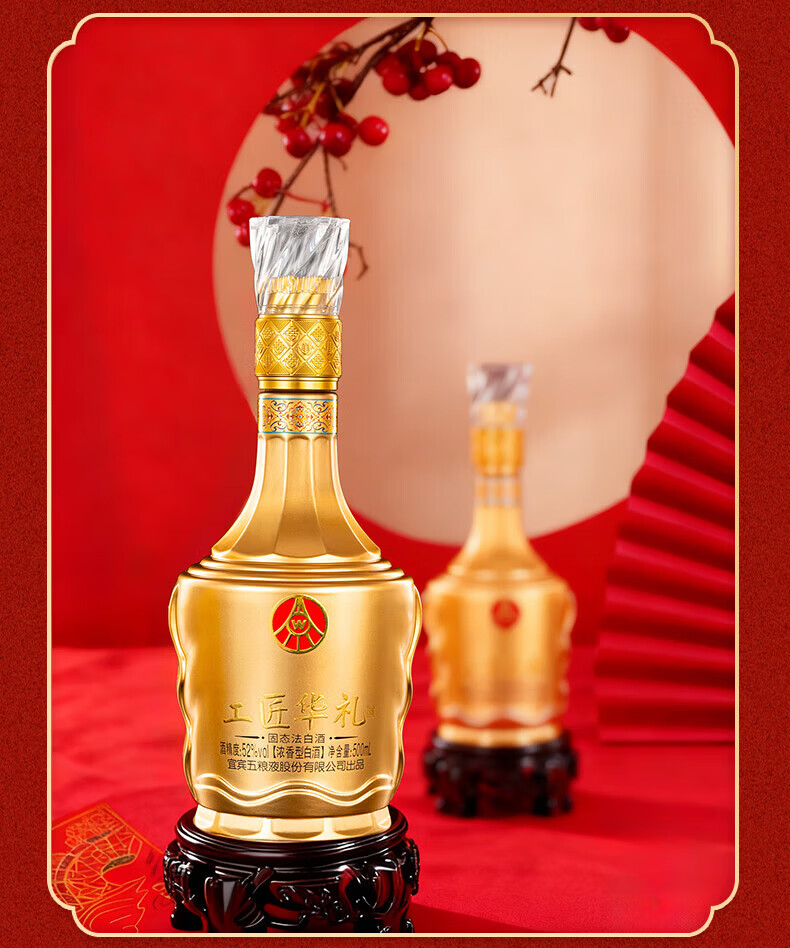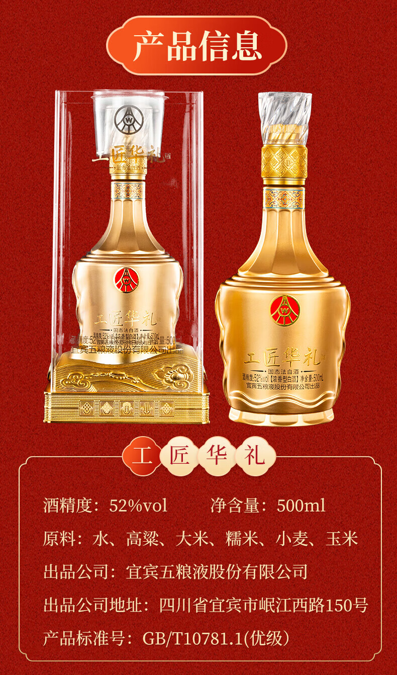 五粮液股份出品 官方授权 尊耀华樽大典 大事可成盘龙纪念礼盒白酒 52度 500mL 6瓶 工匠华礼金瓶整箱