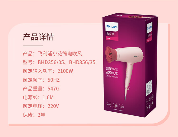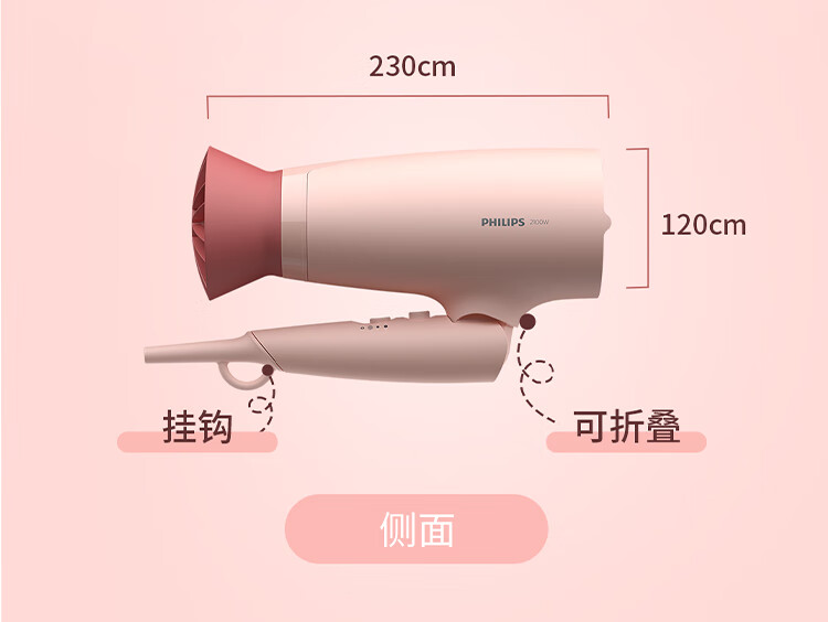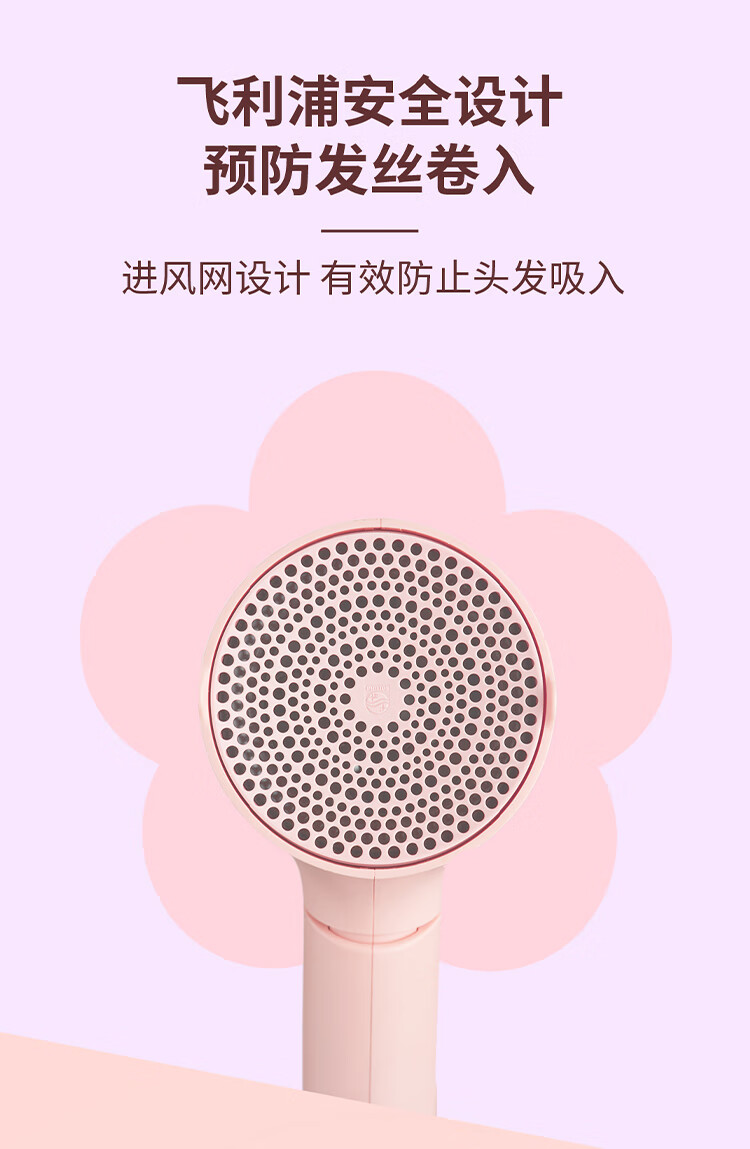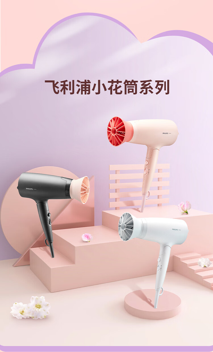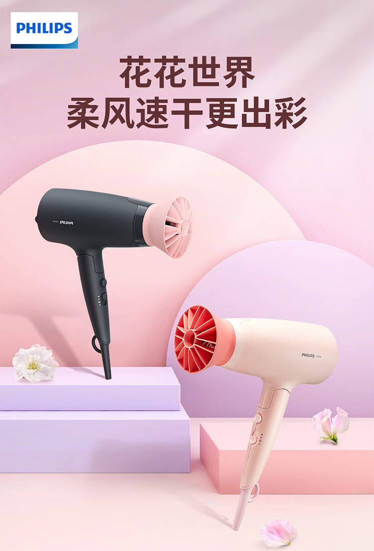 飞利浦(PHILIPS)电吹风机 3系小花筒 大功率速干负离子护发小花筒微暮黑 可折叠吹风机学生宿舍专用 生日礼物