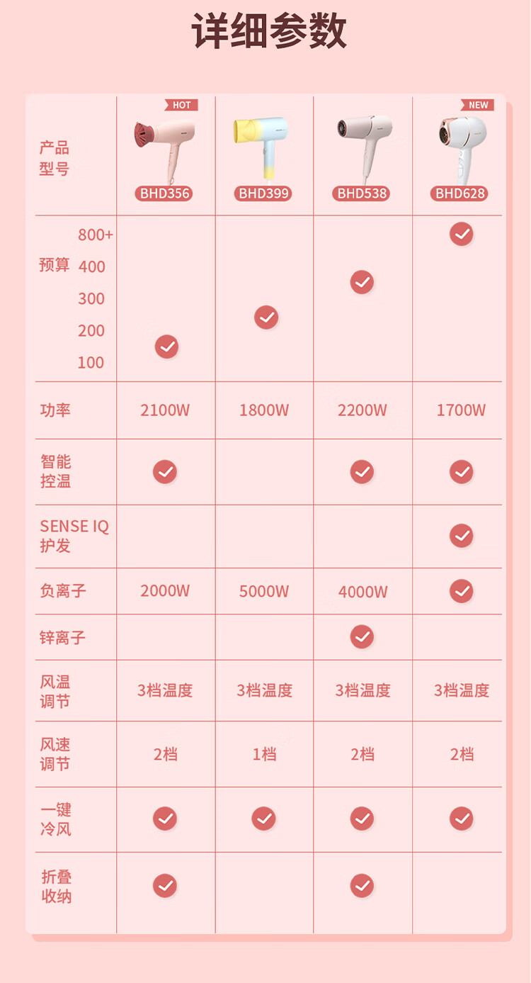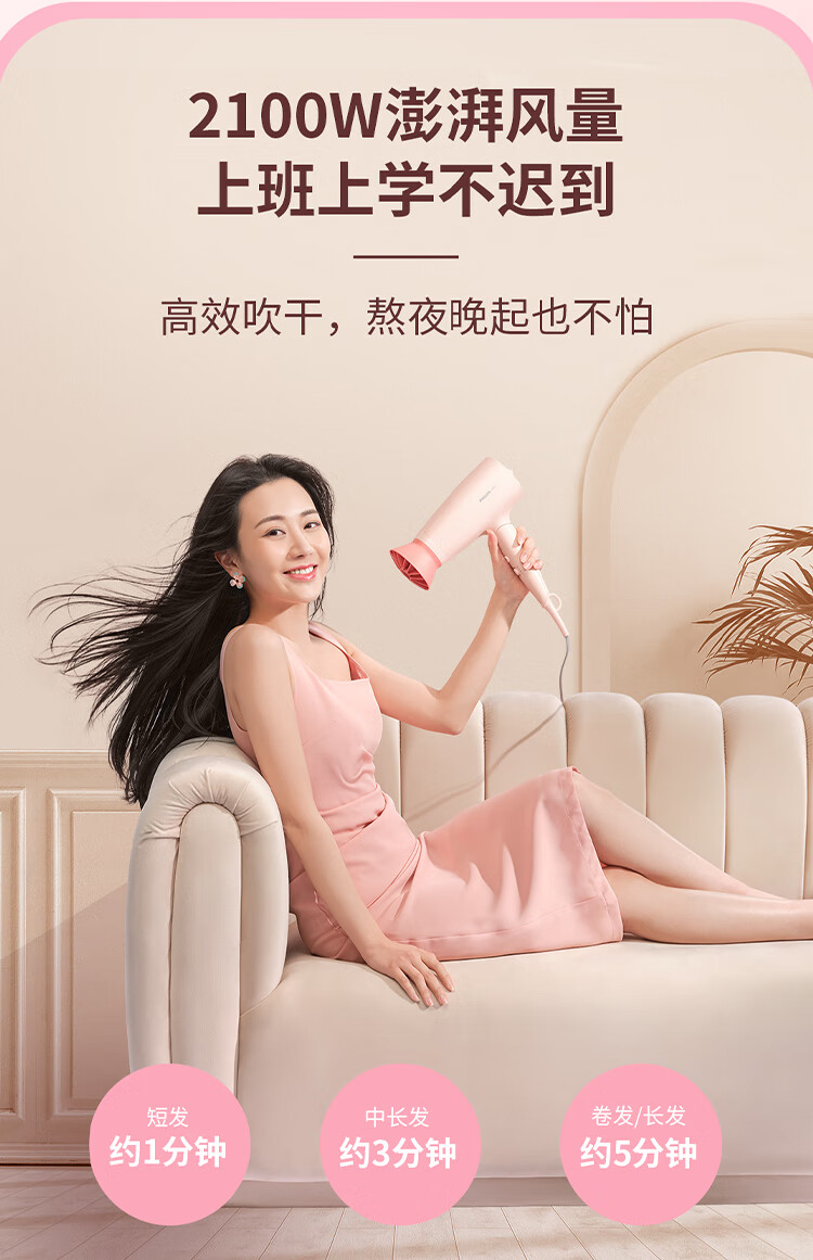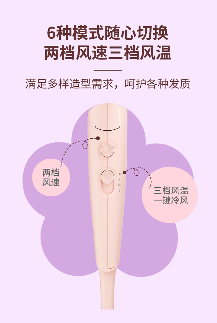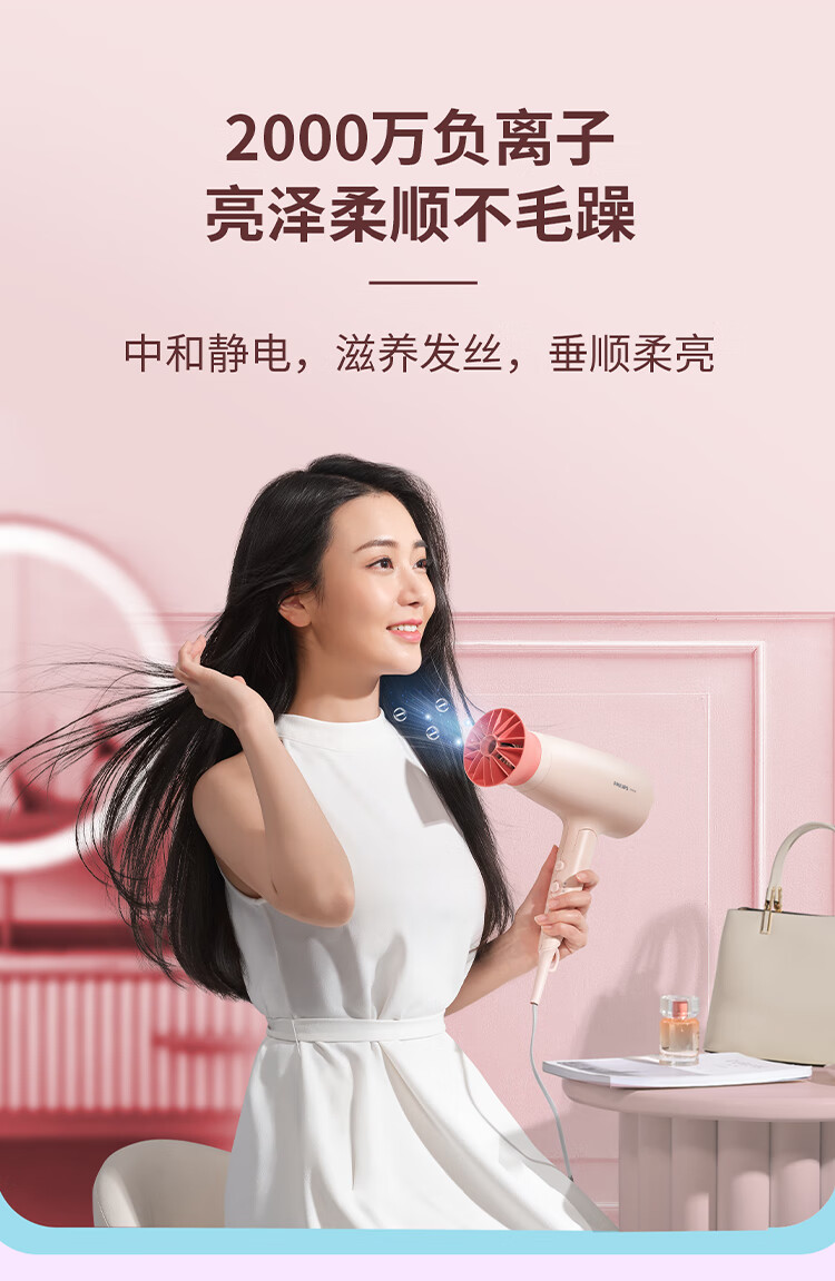 飞利浦(PHILIPS)电吹风机 3系小花筒 大功率速干负离子护发小花筒微暮黑 可折叠吹风机学生宿舍专用 生日礼物