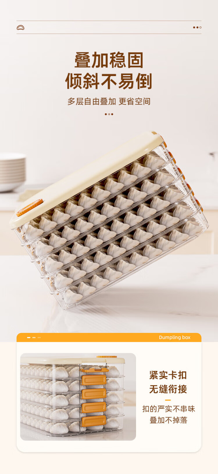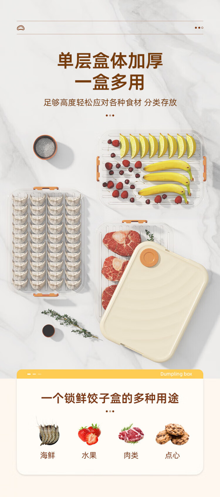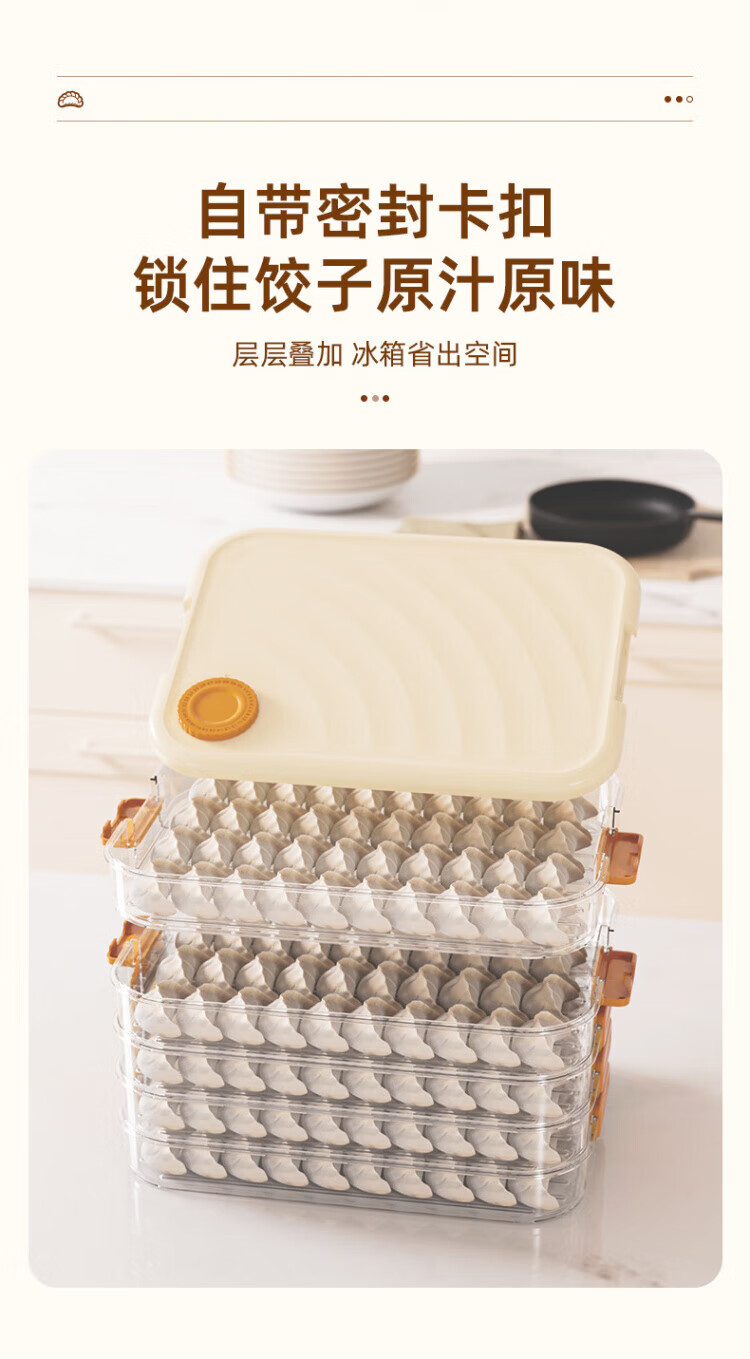 SSIIXX日本品牌冷冻速冻饺子盒厨房水饺收纳冰箱用 保鲜不沾底加厚云吞 【可装120个饺子】 3层 1盖-白色