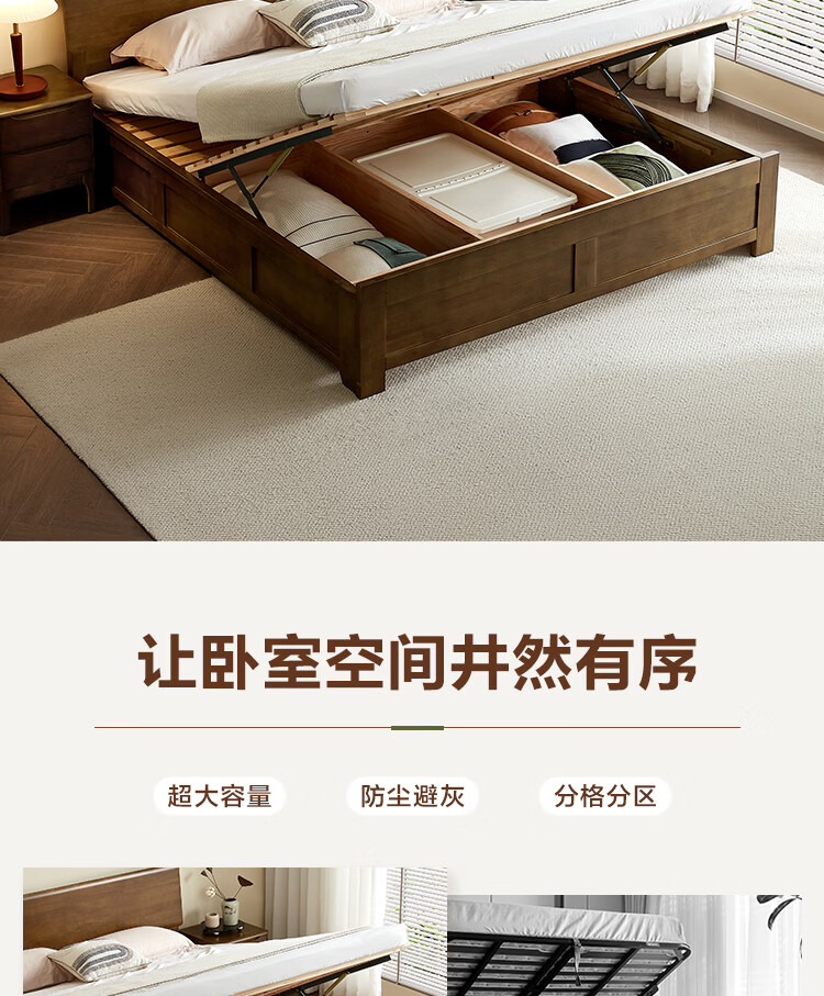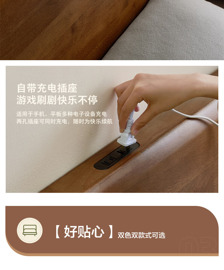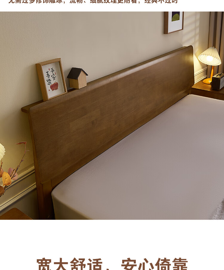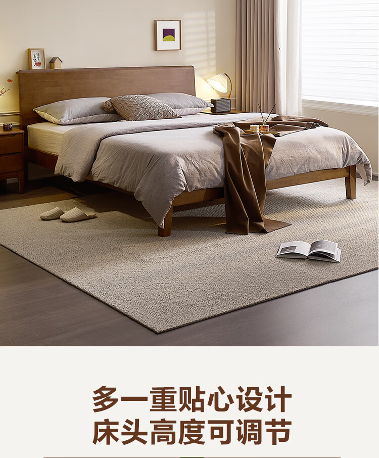 全友家居 胡桃木色实木床智能床现代简约主卧室双人大床1.8x2米家具