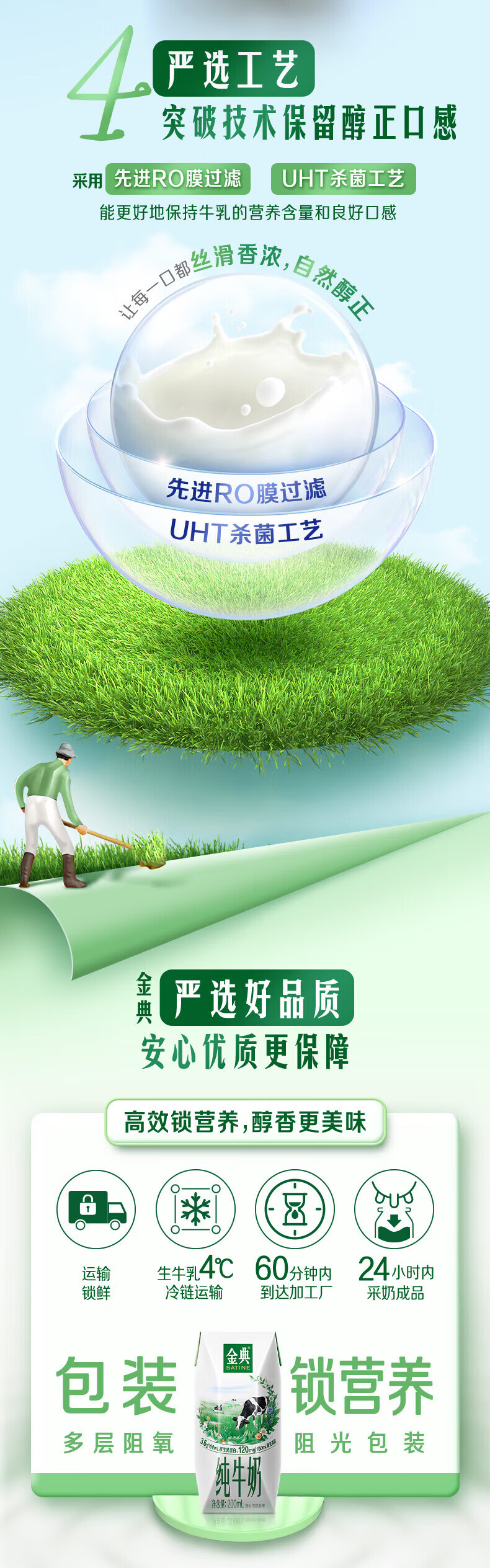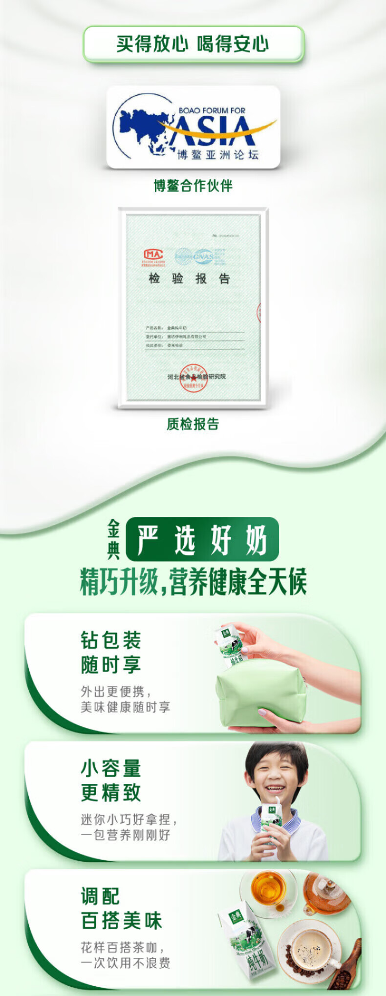 金典纯牛奶 3.6g原生乳蛋白 原生高钙 牛奶整箱送礼 12月产 金典纯牛奶200ml*12盒*2箱