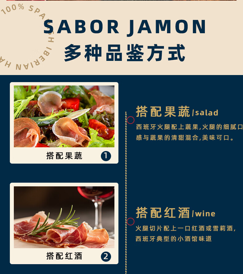 SABORJAMON西班牙进口黑标火腿切片50g伊比利亚纯橡果黑猪后腿即食源头直发 【萨拉米礼盒】原味+红椒味200g