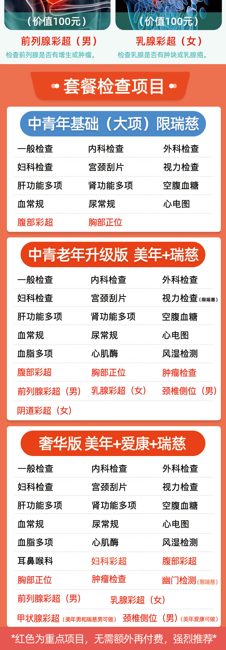 美年大健康瑞慈体检关爱家人通用体检套餐父母成人男女全国通用 豪华版(瑞慈体检)