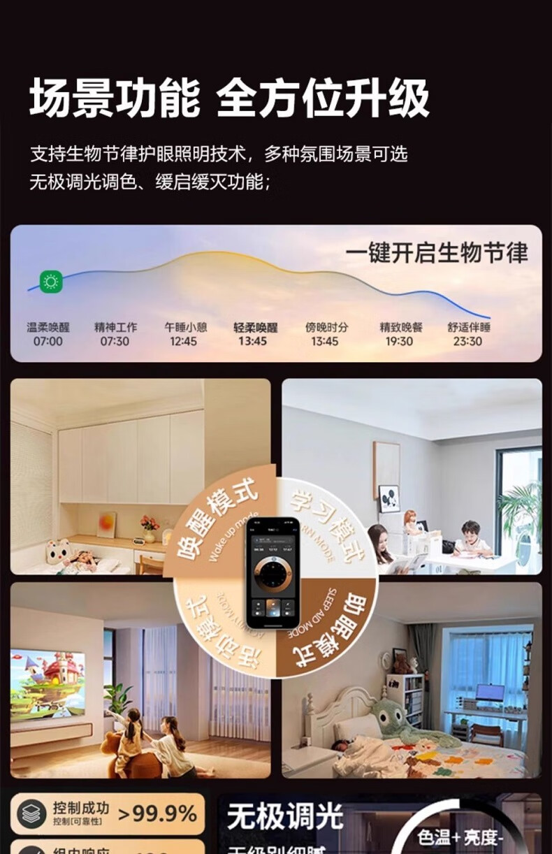 雷士(NVC)大尺寸约1.2米客厅主灯LED吸顶灯卧室智能灯具2025款全光谱护眼S 220W 35㎡内适用 10641lm 智能-悦晨