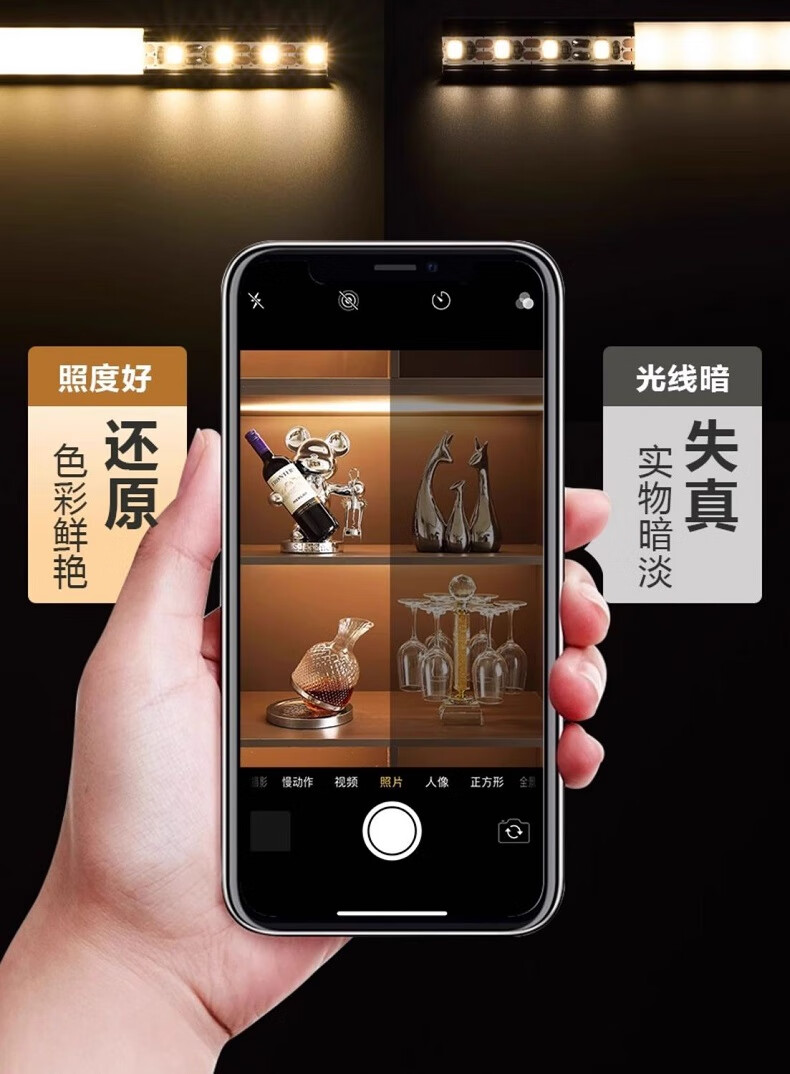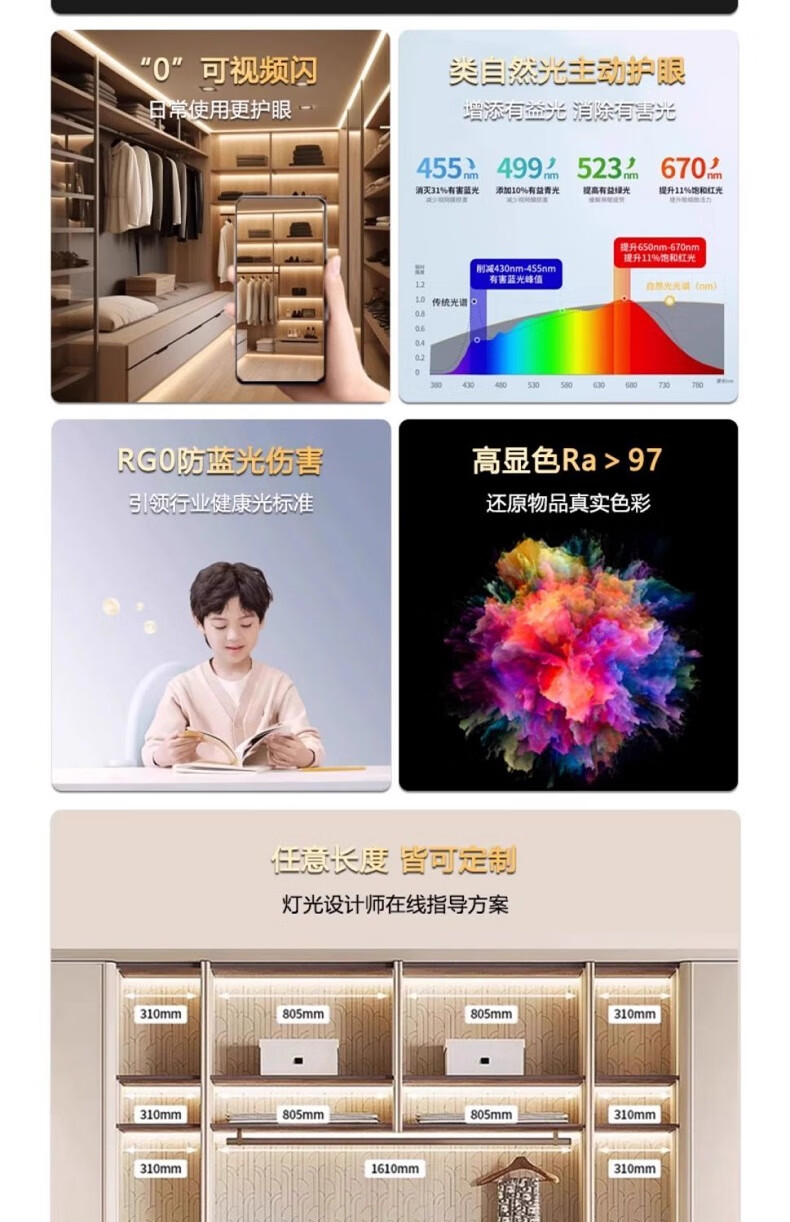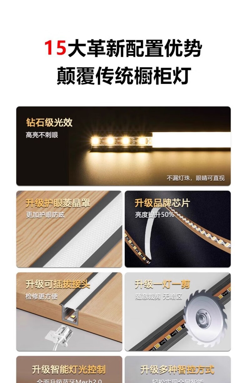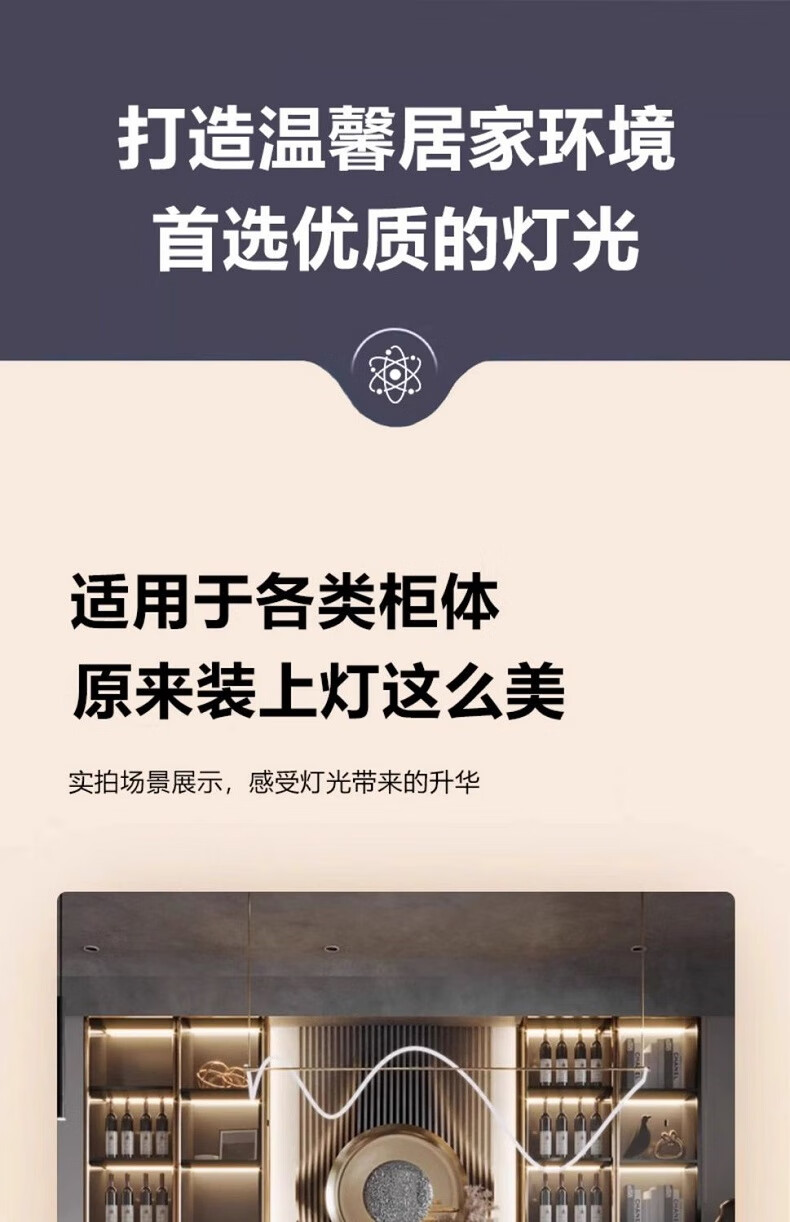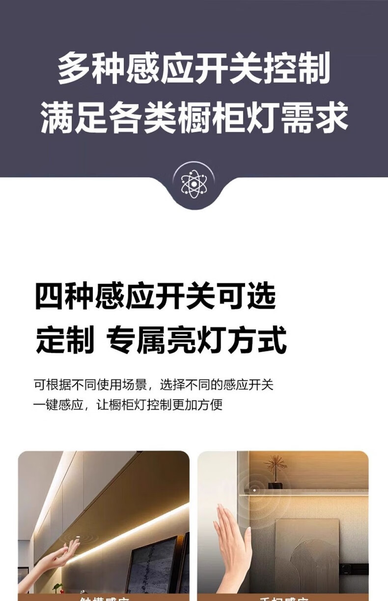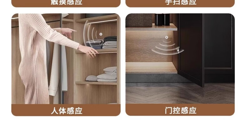芃彩led人体感应灯带充电式无线衣柜橱柜猫眼灯酒柜波纹灯条 【山丘灰】20CM-感应+调光调色