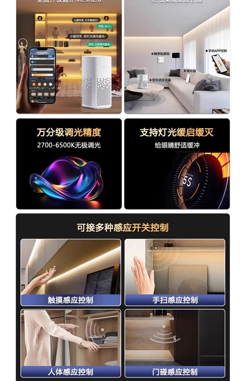 小米已接入米家智能橱柜灯电源12V语音米家24V衣柜酒柜三色调光变压器 米家智能电源mesh2.0-24v120w