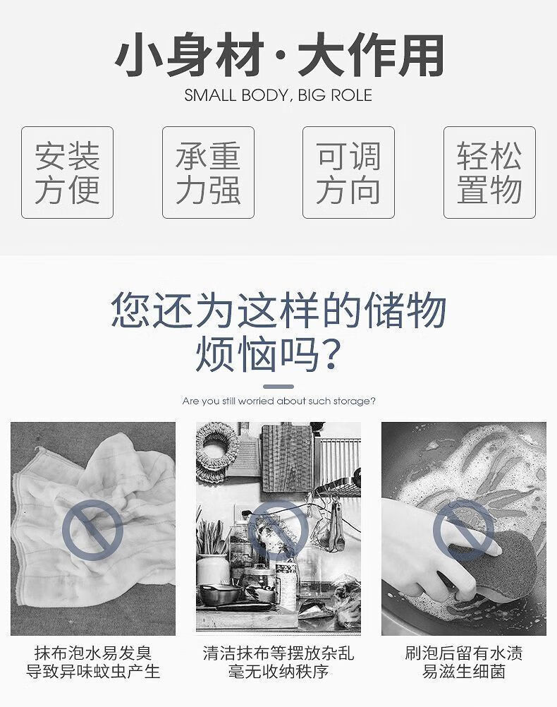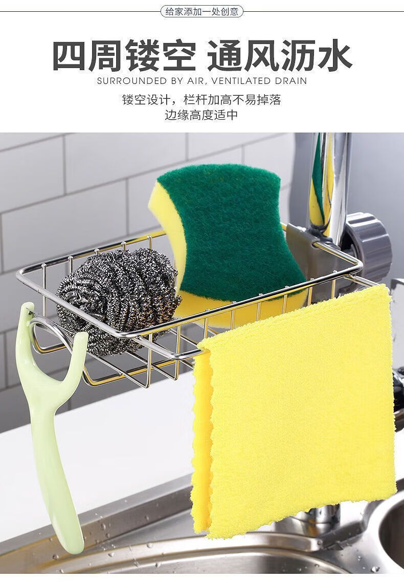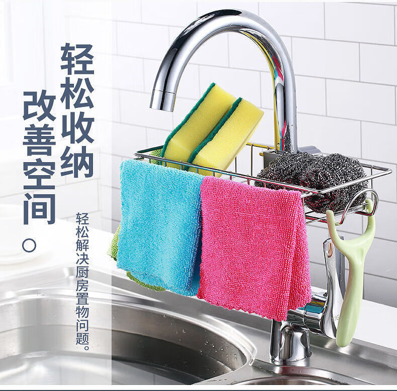 咏幻304不锈钢水槽海绵沥水置物架厨房水池台面挂架抹布洗洁精收纳架