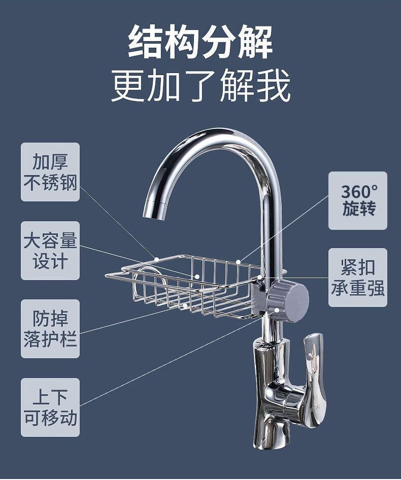 【厂家直发】水龙头置物架沥水架不锈钢水槽洗碗水池收纳厨房用品 【水龙头置物架】单边基础款 【特厚款Z+生锈包赔】