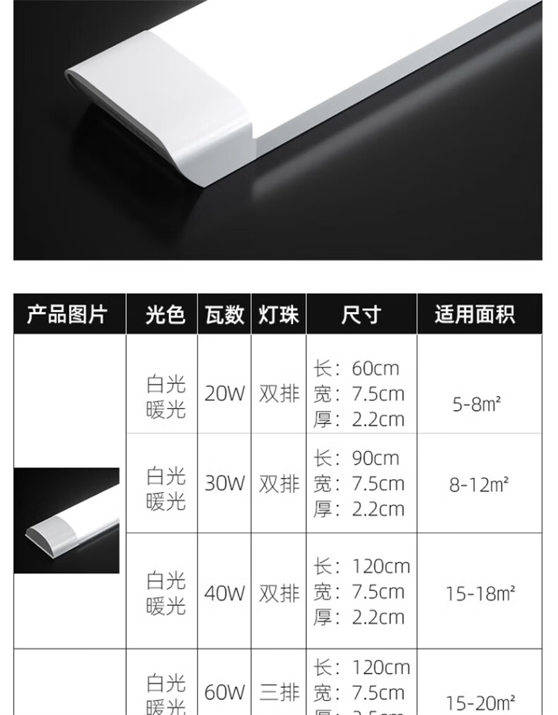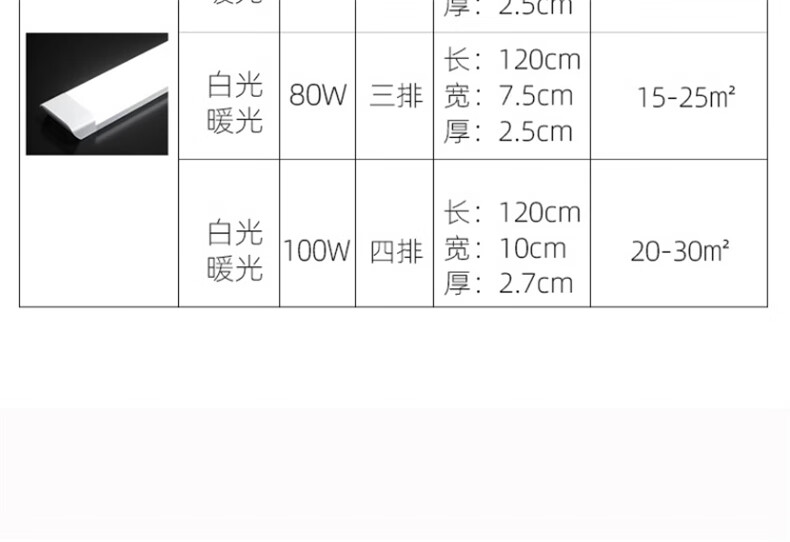 拉伯塔led灯条灯管一体化日光灯节能灯长条灯1.2米三防灯办公室仓库灯 【三防方形款】1.2米-80W-白光