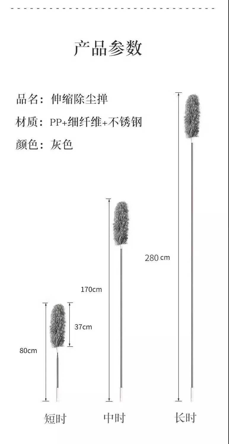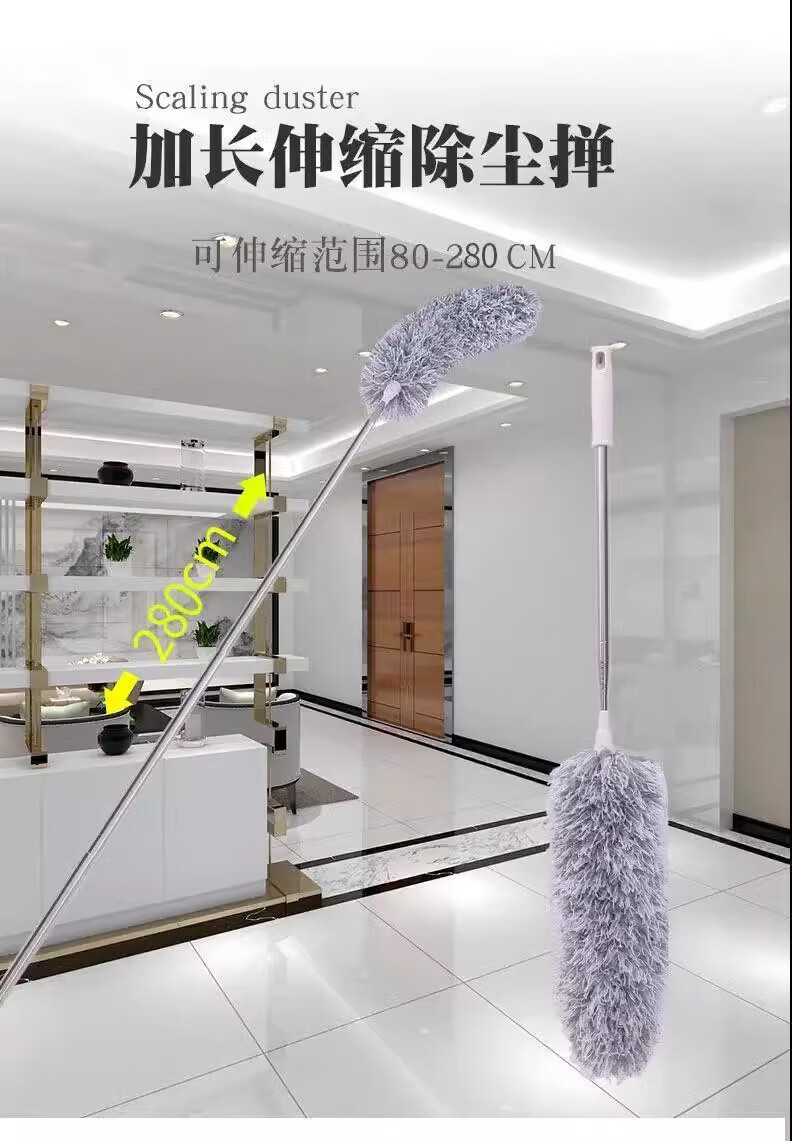 【工厂直供】鸡毛掸子弯曲除尘可清家用洗不掉伸缩打扫灰尘蜘蛛网 伸缩除尘掸 1个 【伸缩杆2.8米+3个替换头】