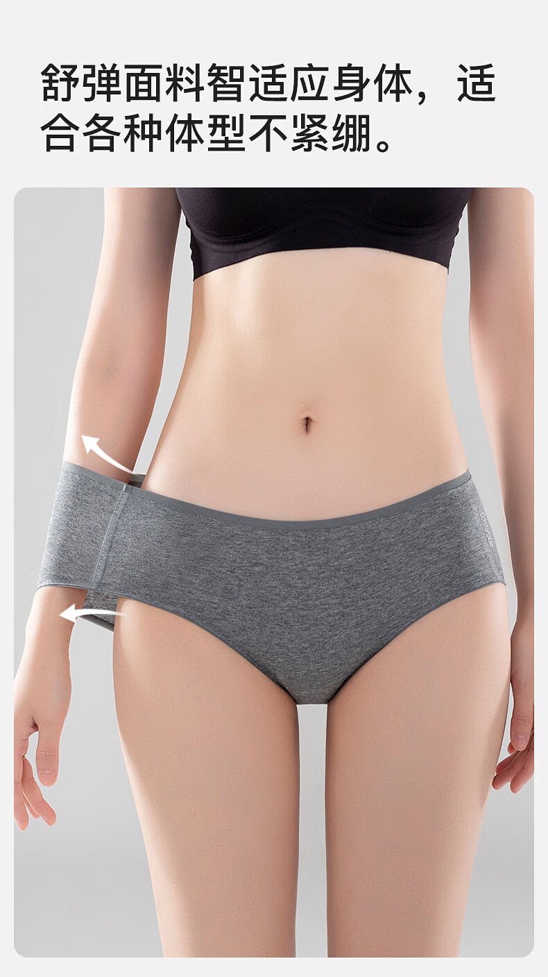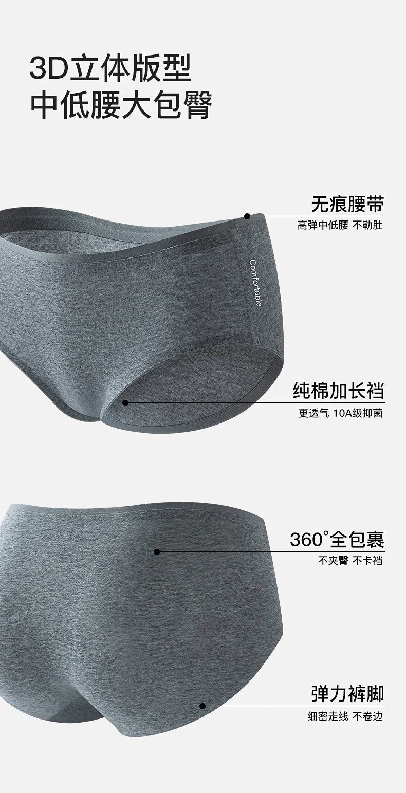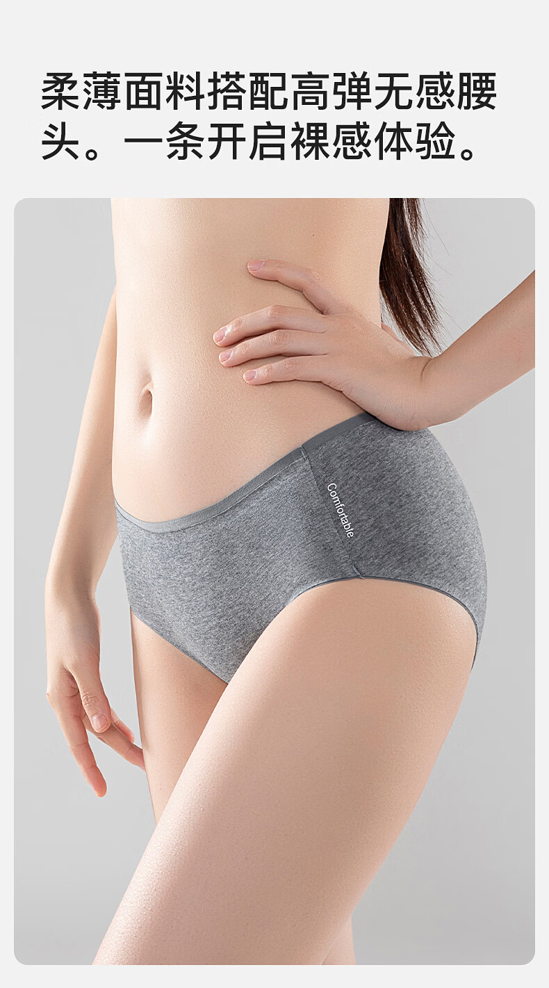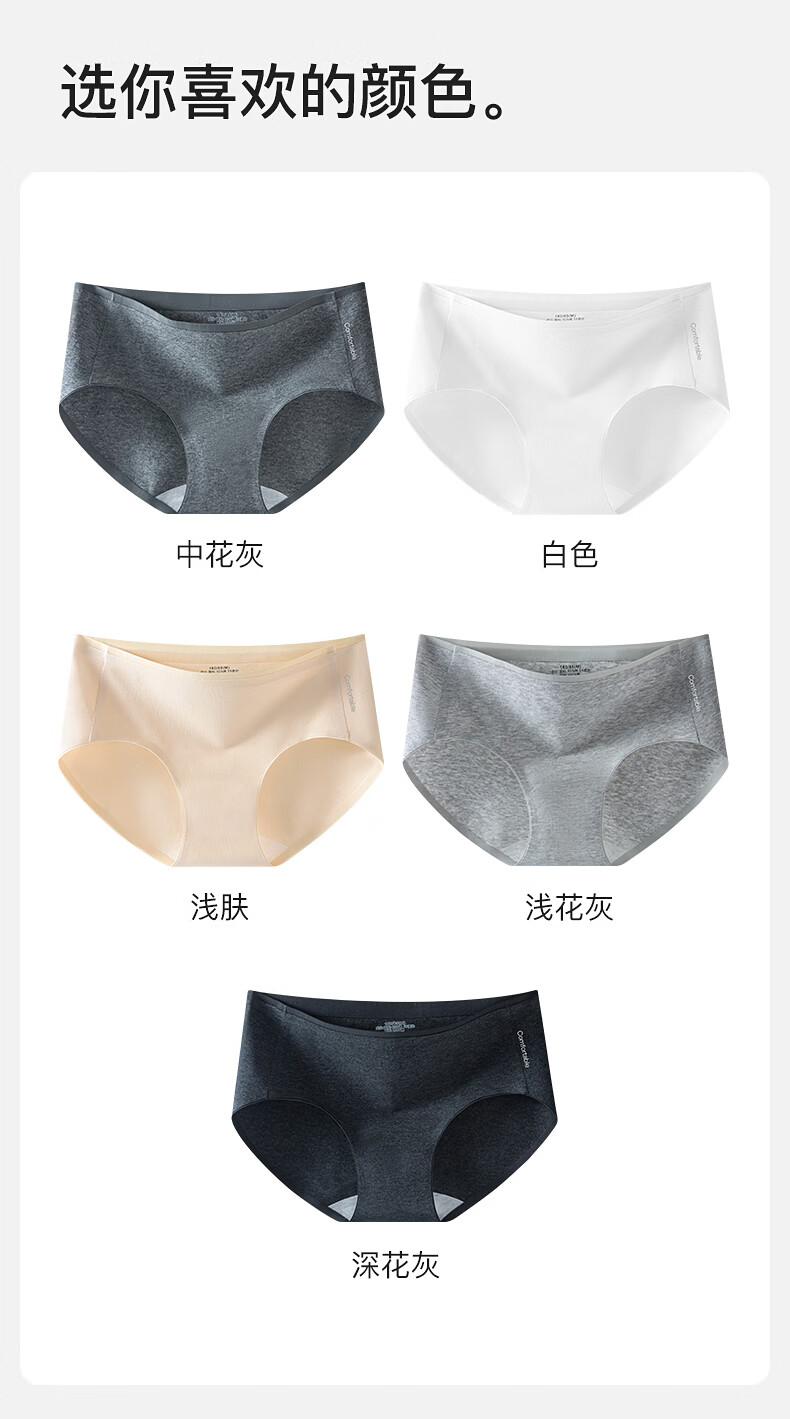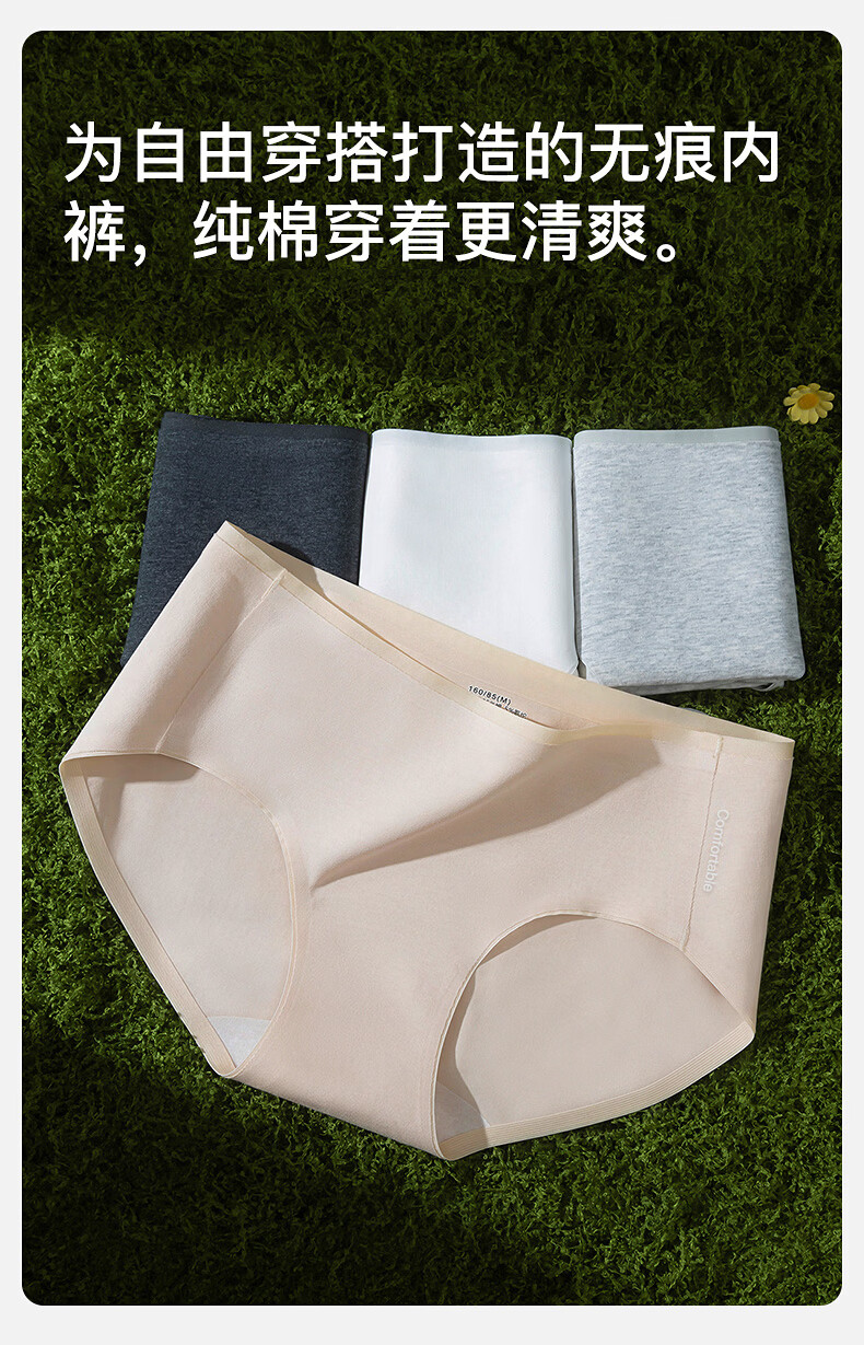 真维斯(Jeanswest)女士内裤女纯棉无痕抗菌透气加长裆新款大码少女低腰三角裤 【4条】白色+浅肤+中花灰+白色 M 80-95斤