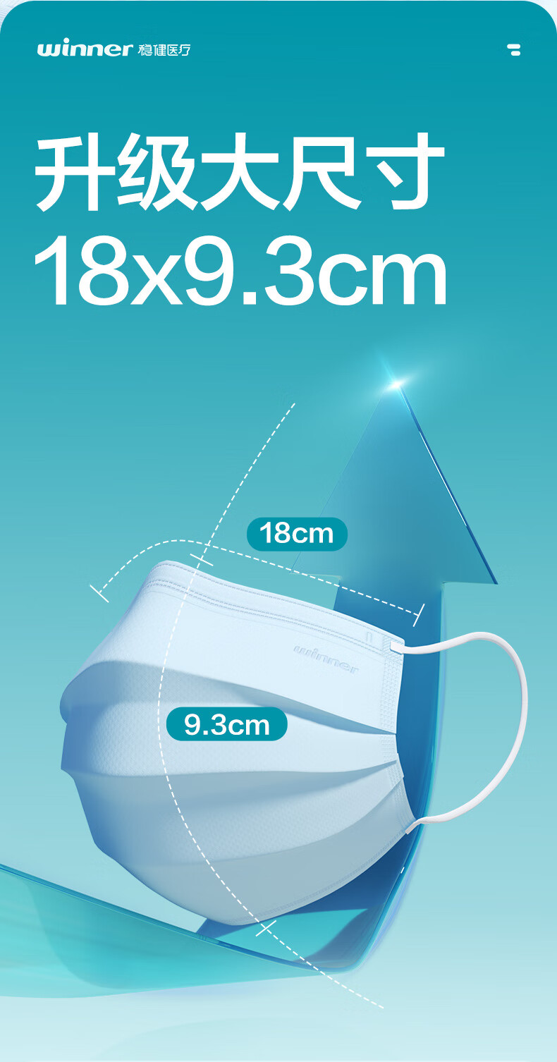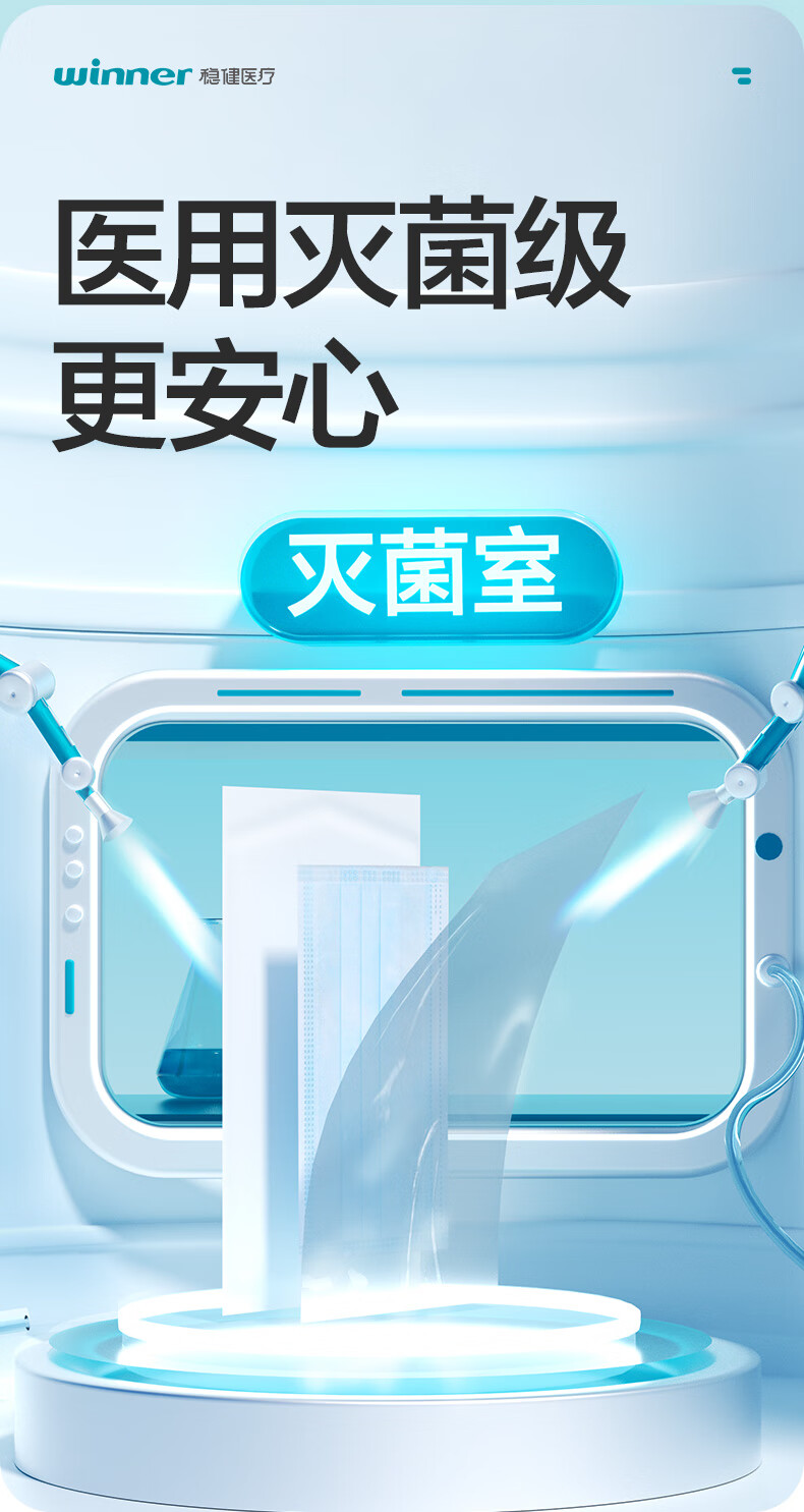 稳健一次性医用外科口罩灭菌级100只 棉里层亲肤透气升级加大款防闷