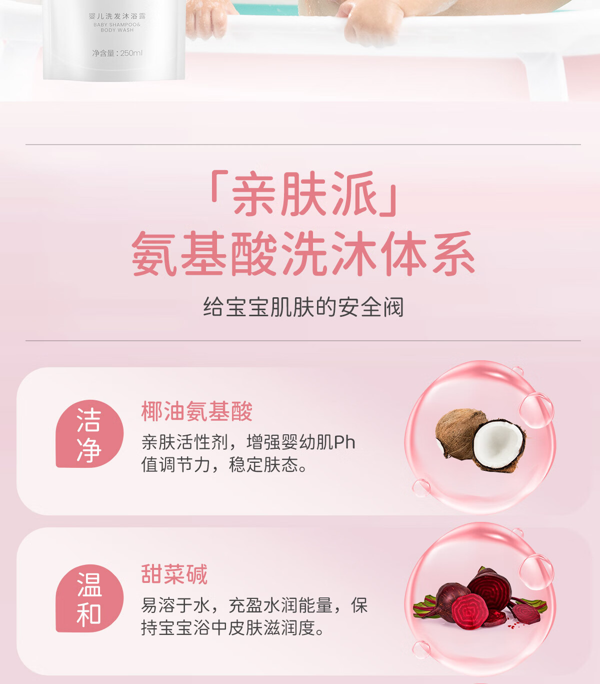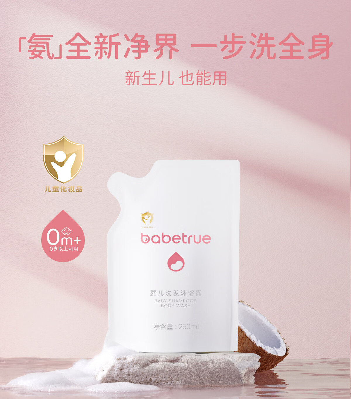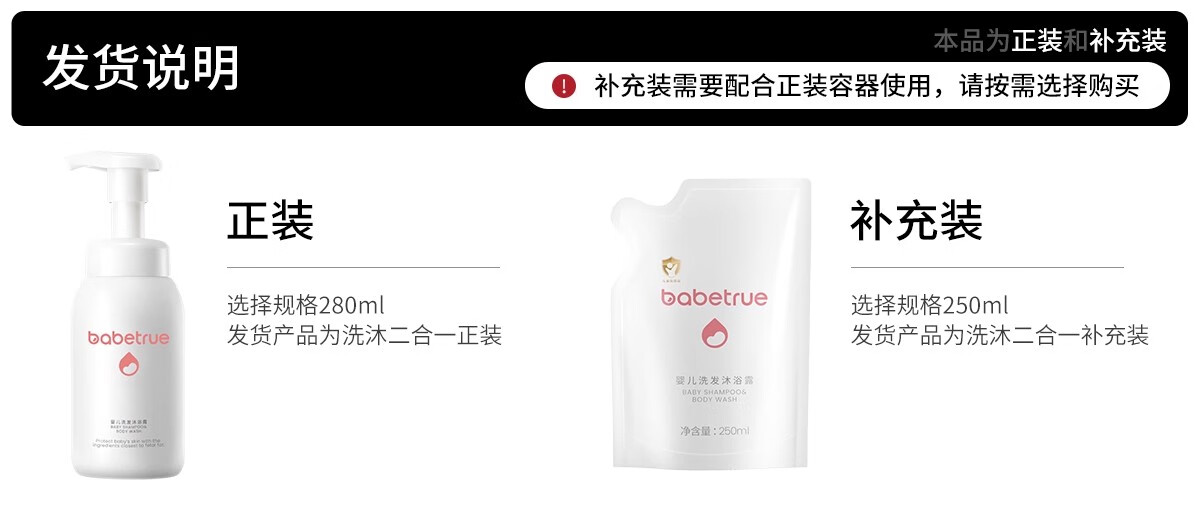 儿初宝(babetrue)婴儿洗发水沐浴露二合一儿童宝宝新生儿洗护温和无泪袋装250ml