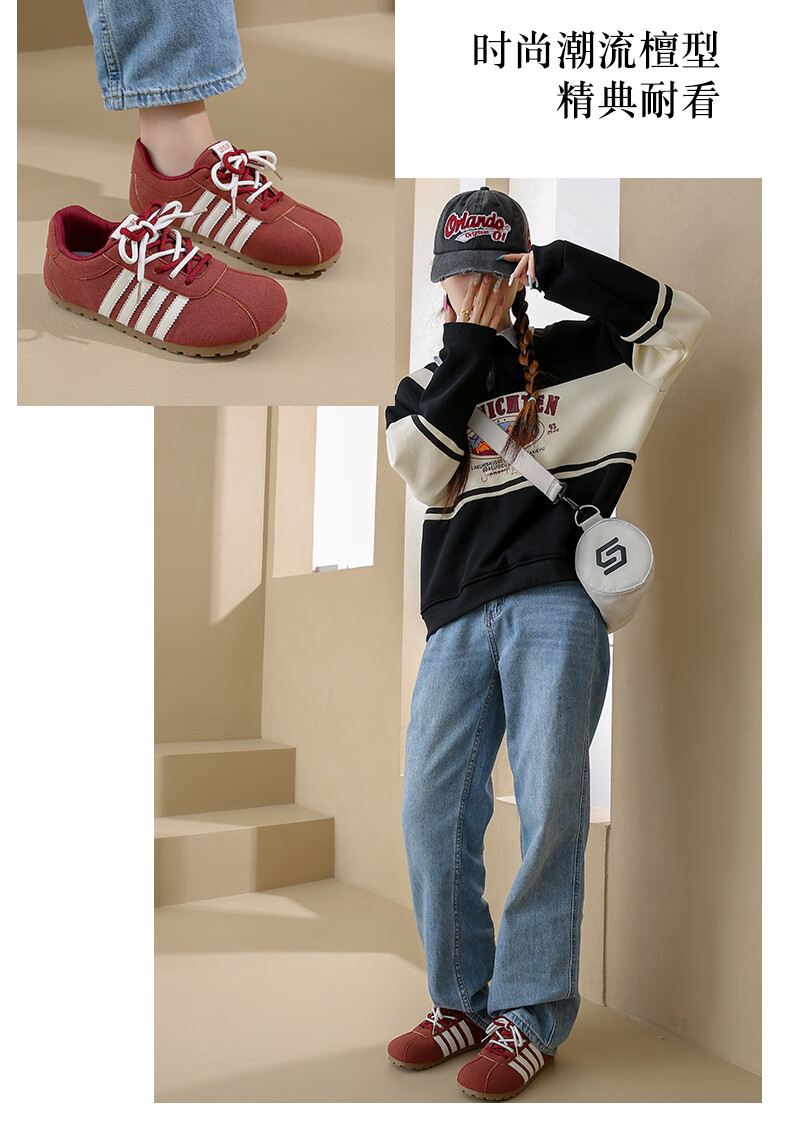 JAN ZIGULLA女士鞋子2025的新款休闲久站不累脚小众丑萌德训秋季chic设计感 安哥拉红 40
