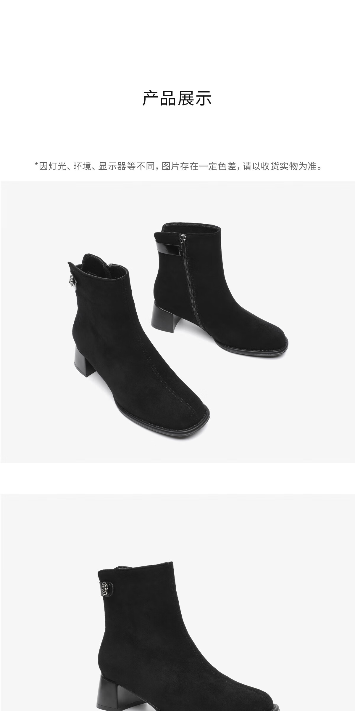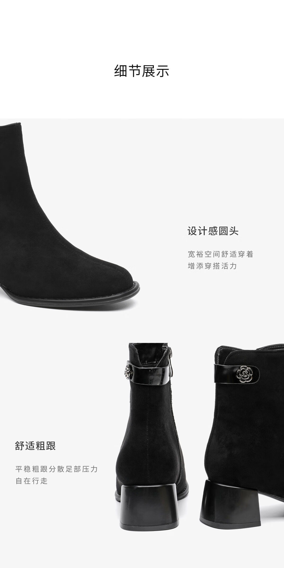 月芽儿2025年秋季新款马丁靴圆头短靴女绒面侧拉链瘦瘦靴气质女靴 绒里黑色01T 34