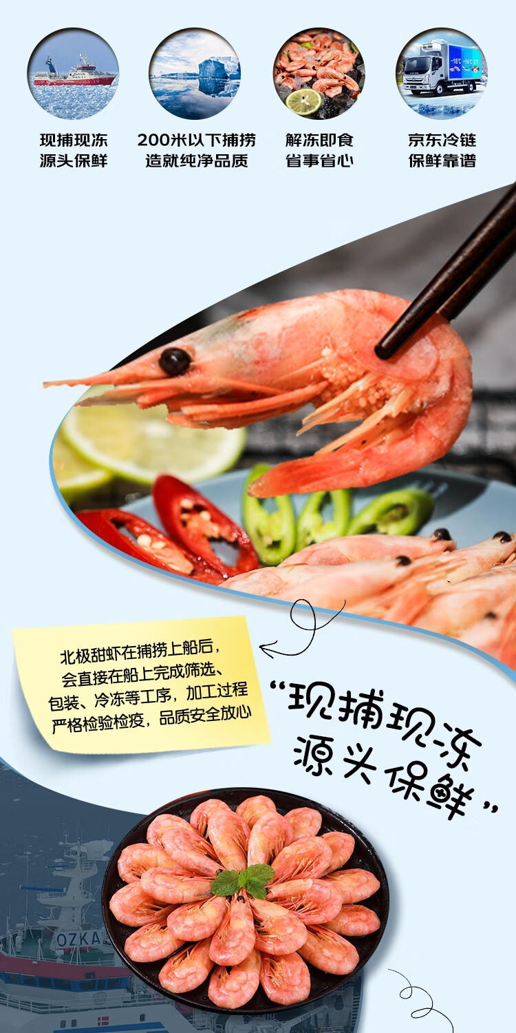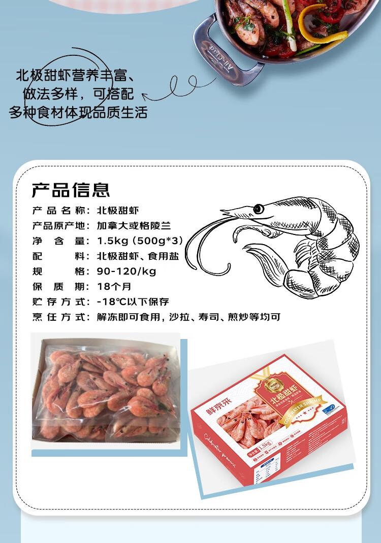 鲜京采带籽北极甜虾 净重3斤/盒 135-195只 解冻即食 年货礼盒