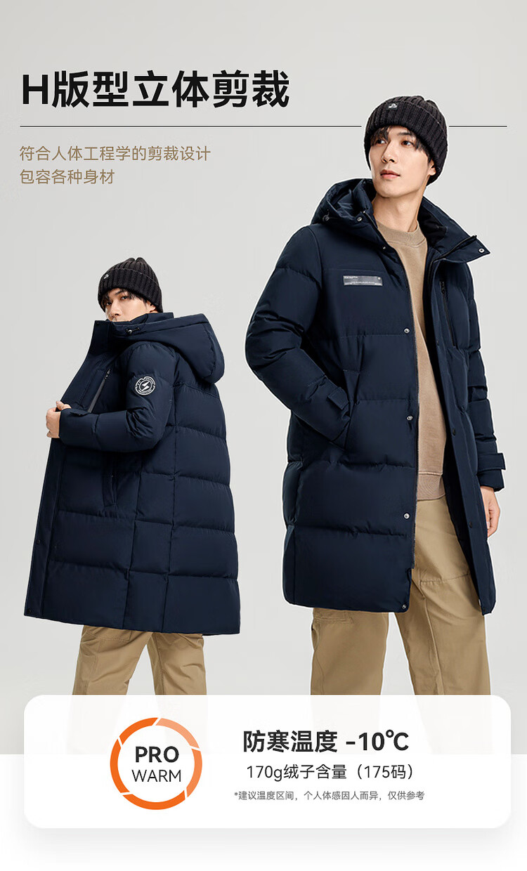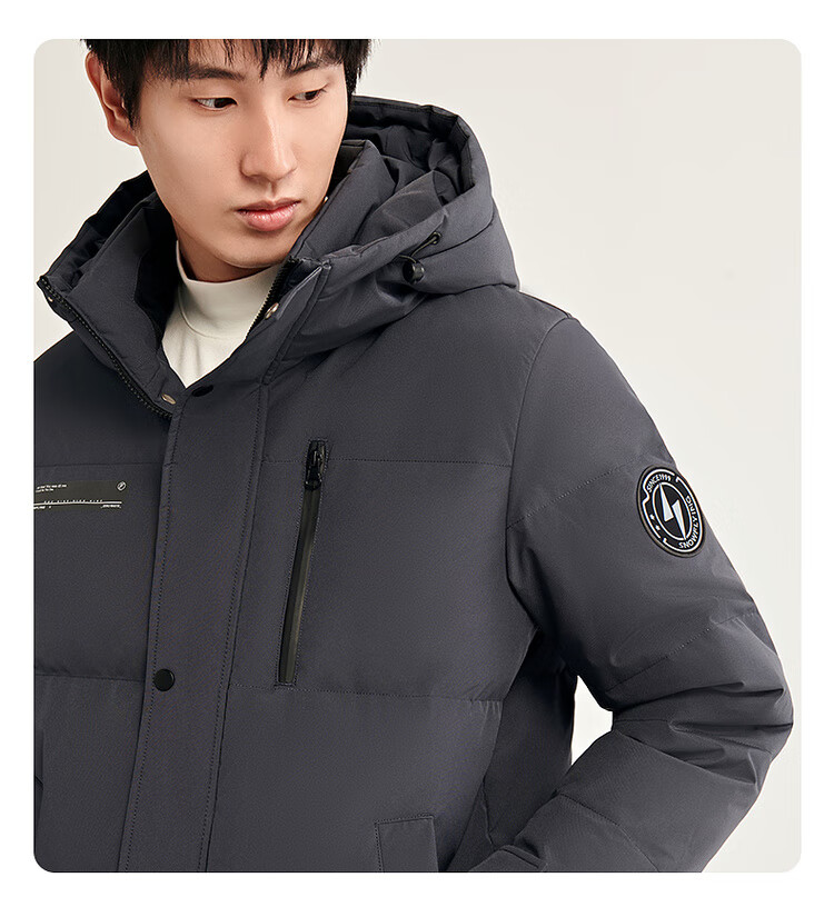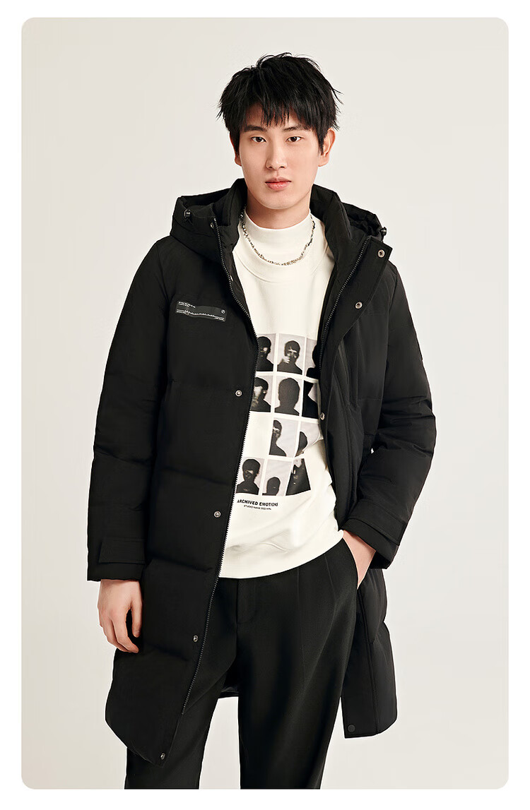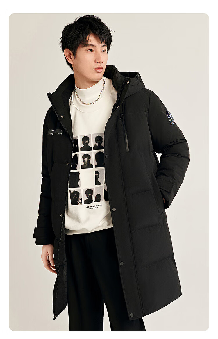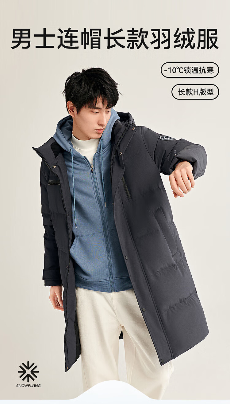 雪中飞秋冬新款时尚休闲舒适廓形男士“H”版型印花立领连帽羽绒服男 黑色|8056 【品质高充绒】 L 175/96A