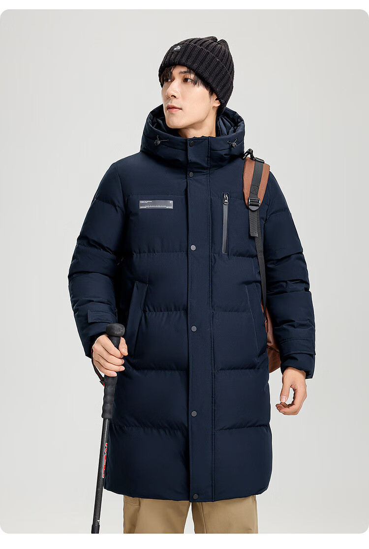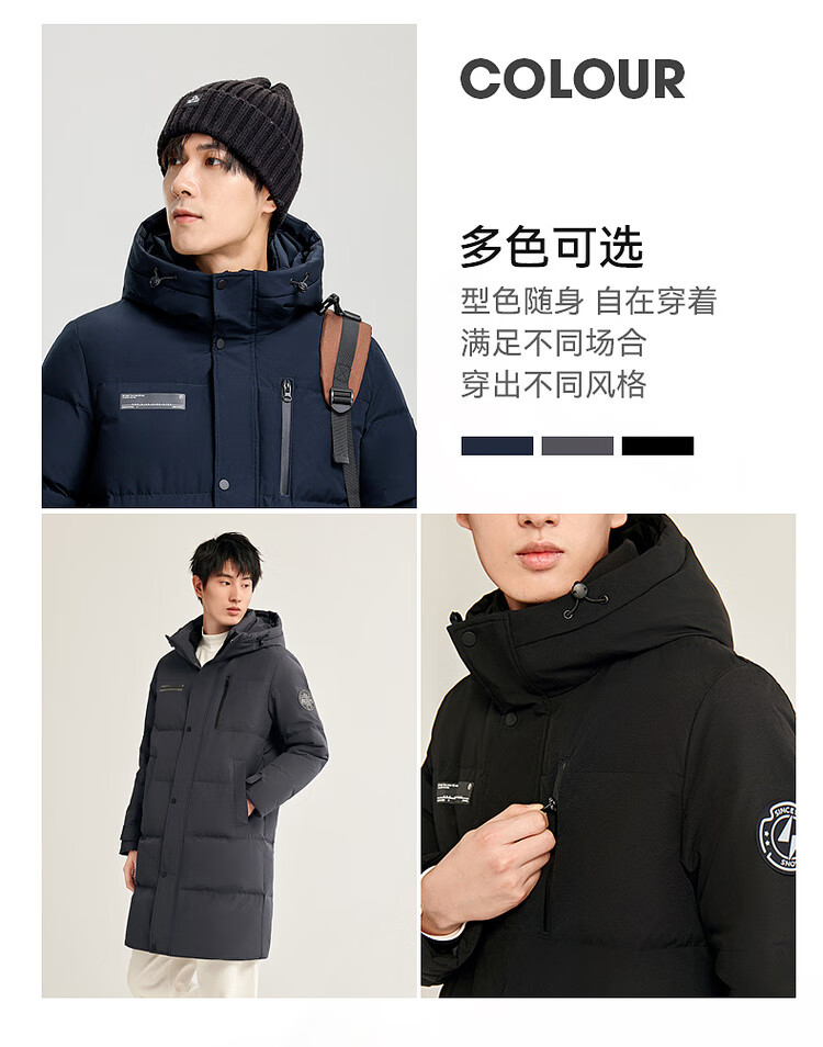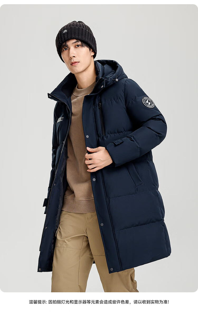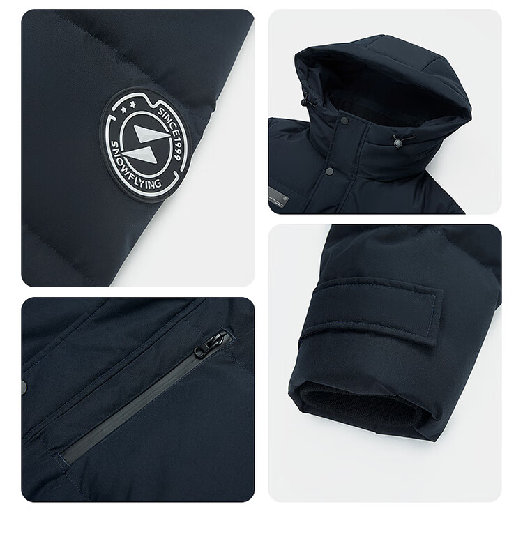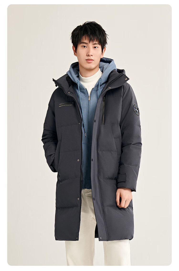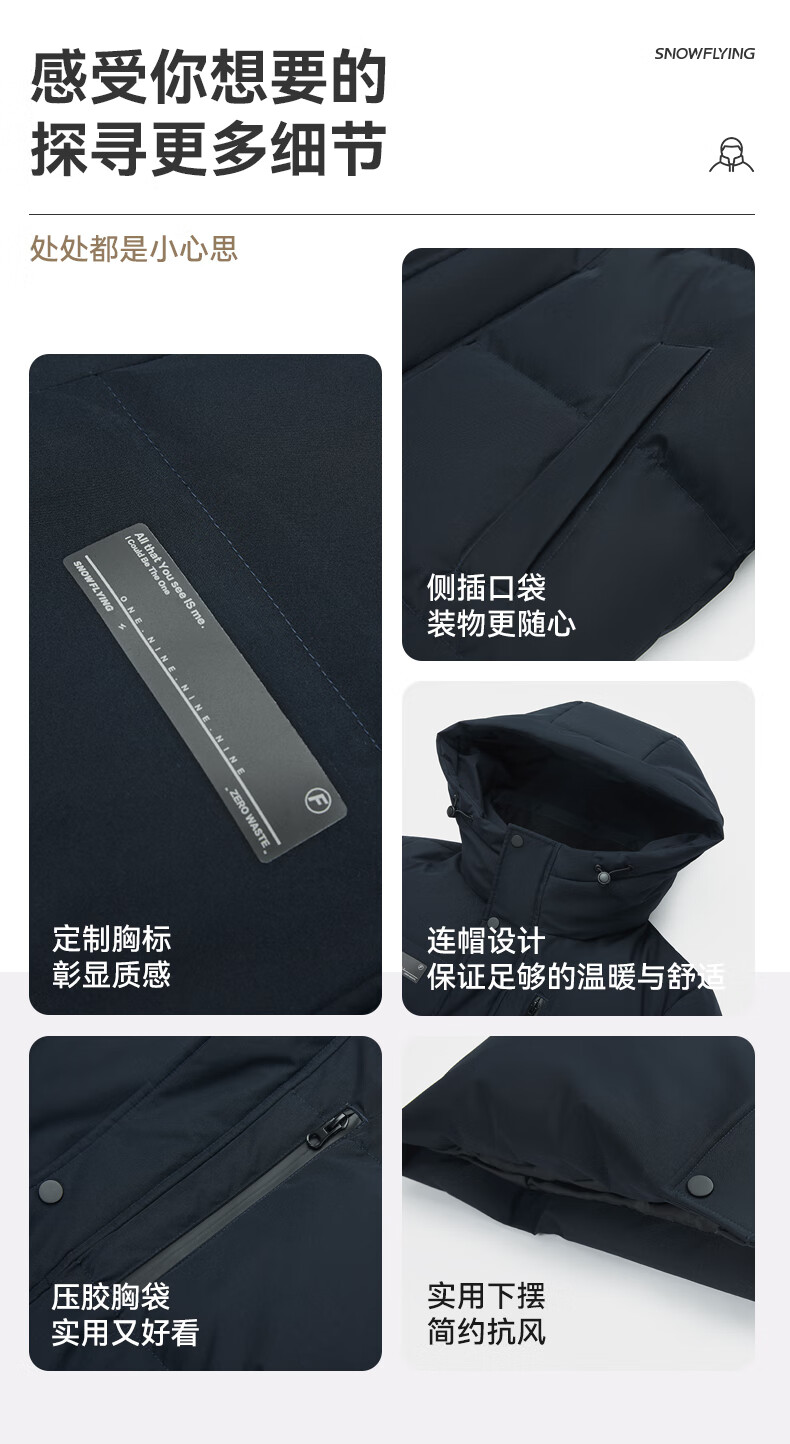雪中飞秋冬新款时尚休闲舒适廓形男士“H”版型印花立领连帽羽绒服男 黑色|8056 【品质高充绒】 L 175/96A