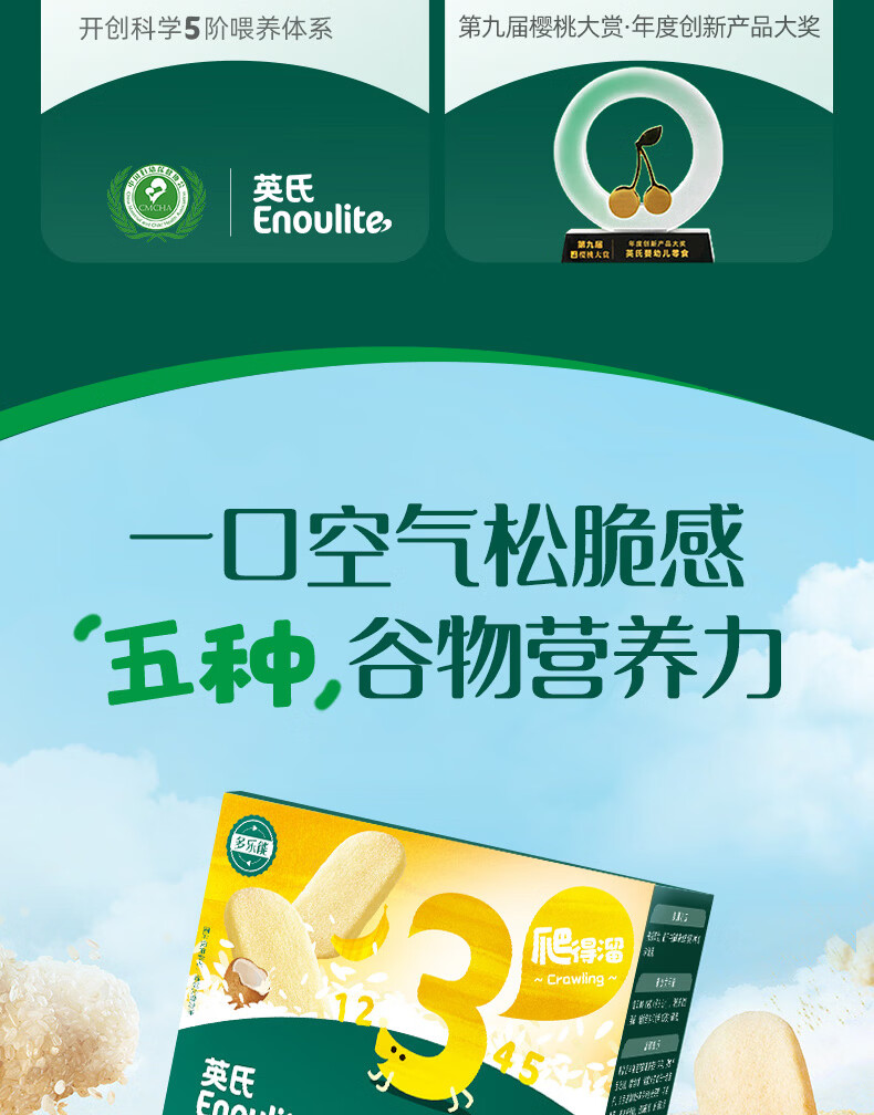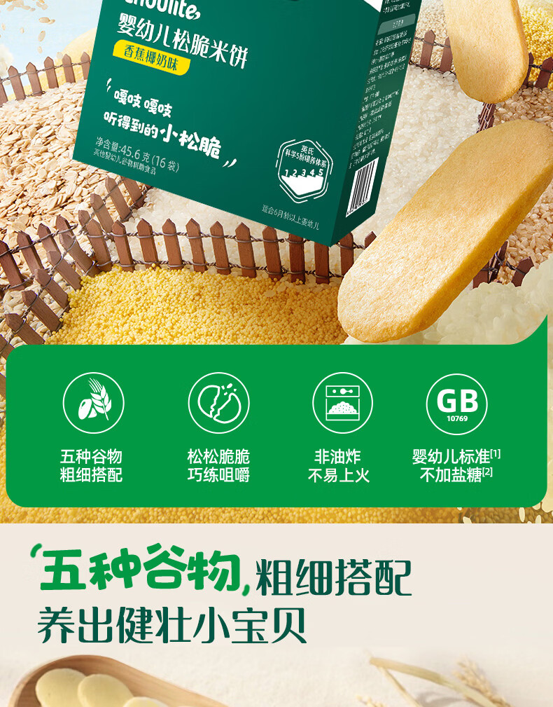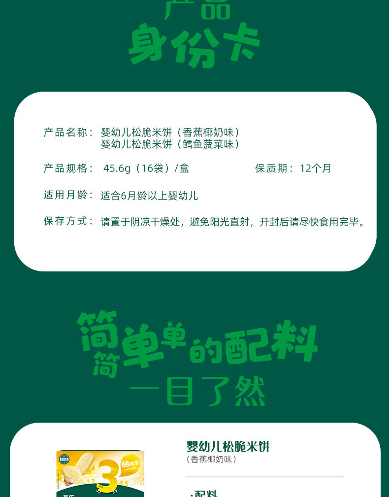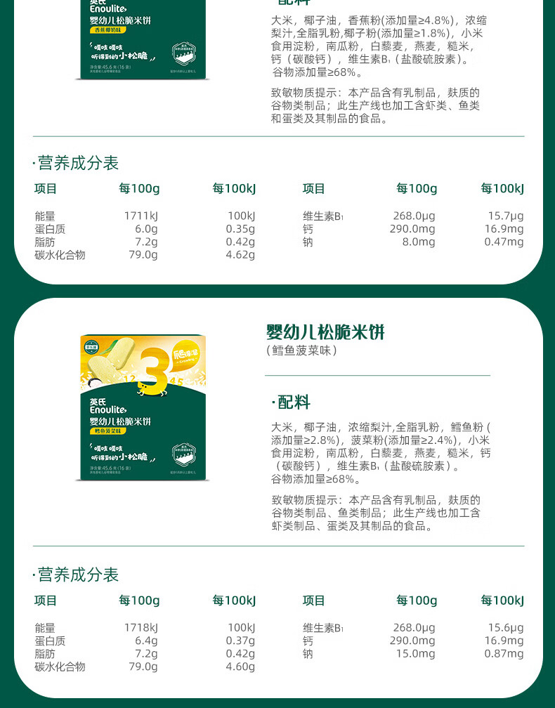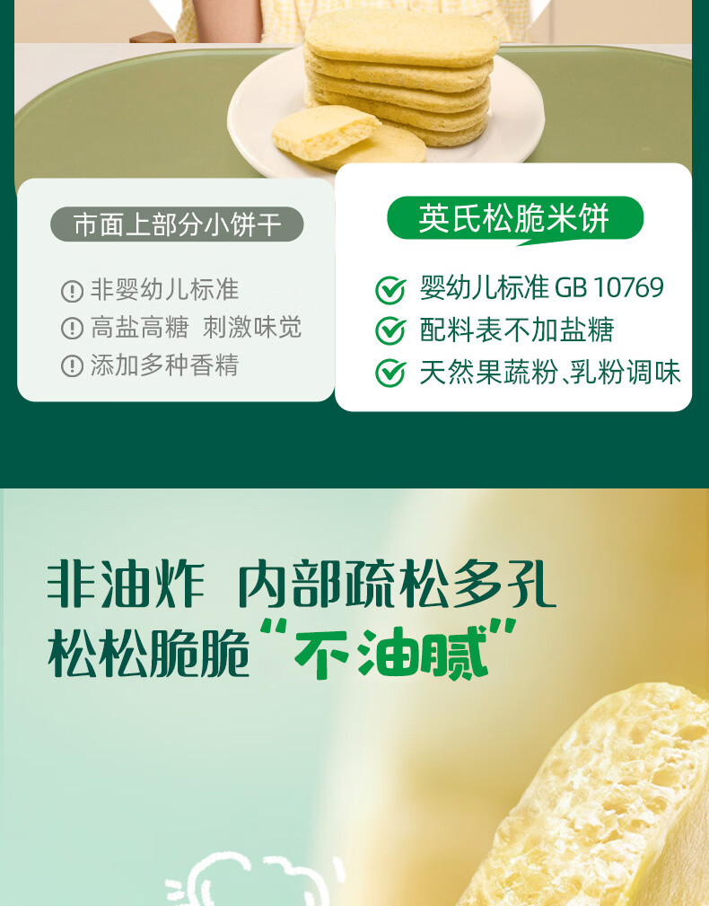 英氏(Engnice)婴幼儿松脆米饼鳕鱼菠菜味 婴儿宝宝零食磨牙米饼饼干45.6g