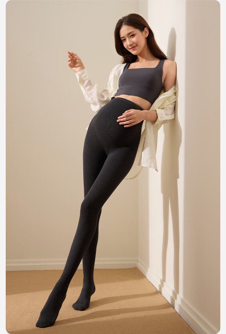 十月结晶打底裤袜秋冬款薄绒棉质孕产妇外穿显瘦托腹塑型九分裤 灰色M码