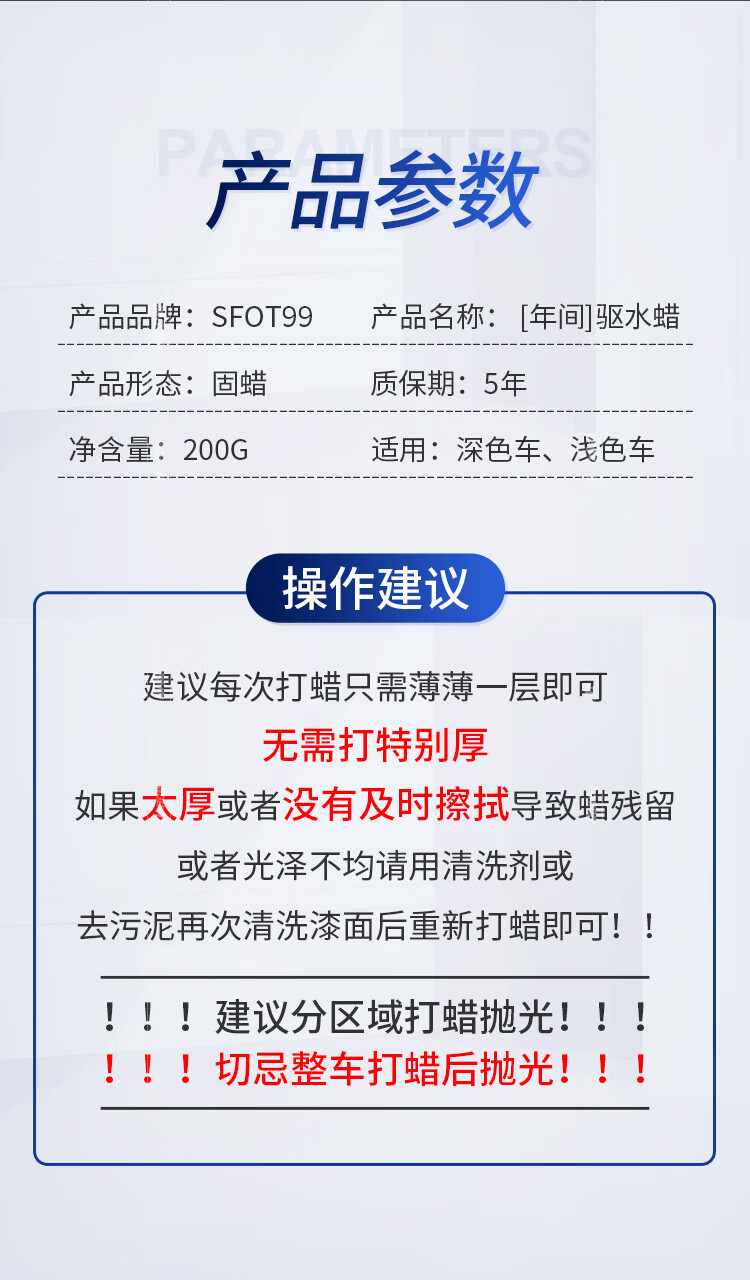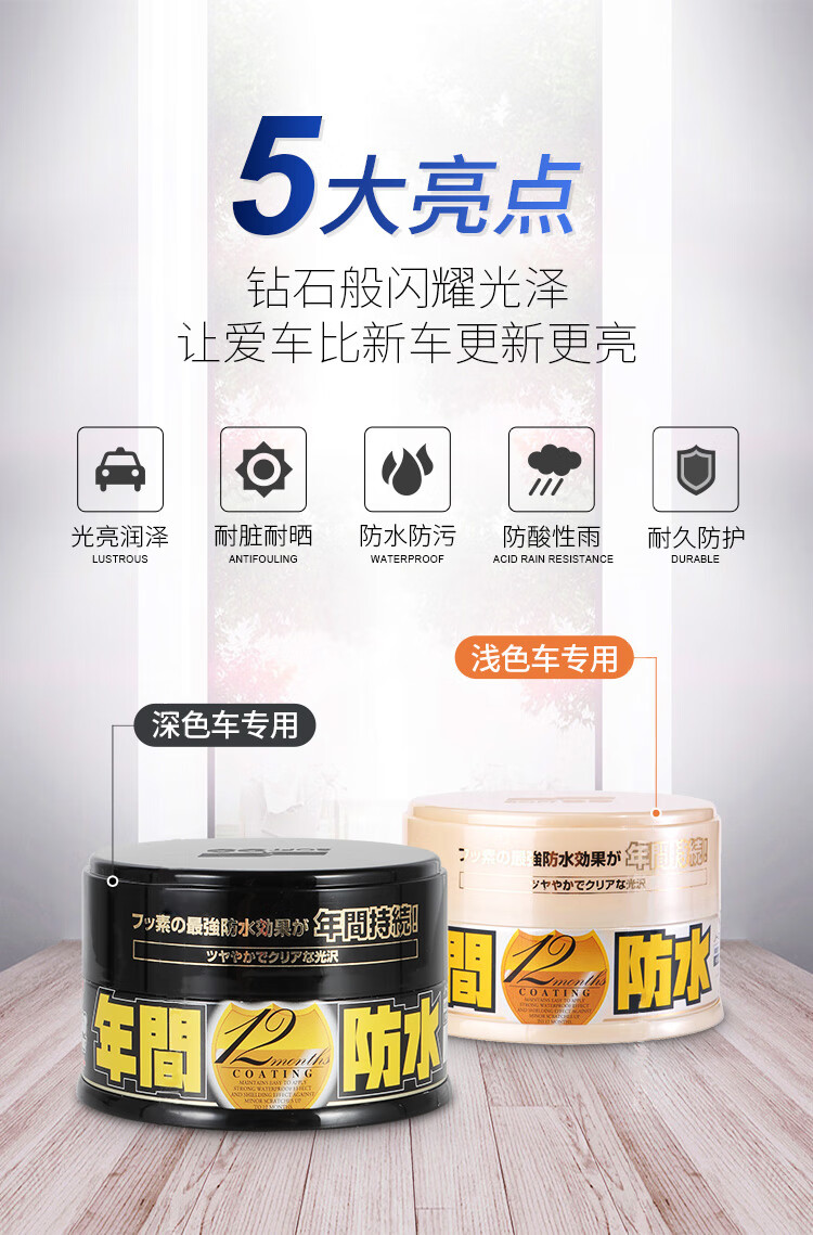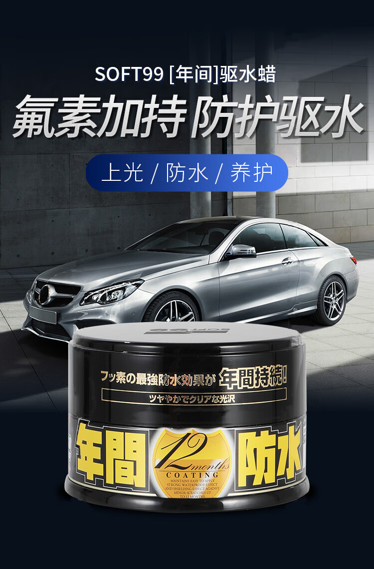 SOFT99汽车蜡抛光养护蜡 日本进口 年间防水棕榈蜡车漆打蜡修复防划痕 黑色/深色车用 200g