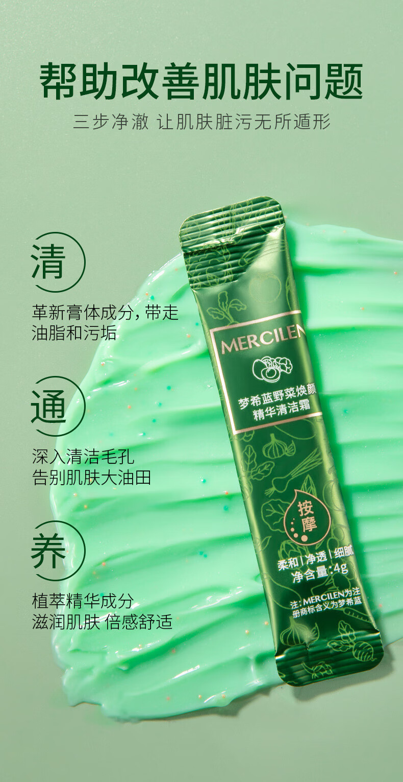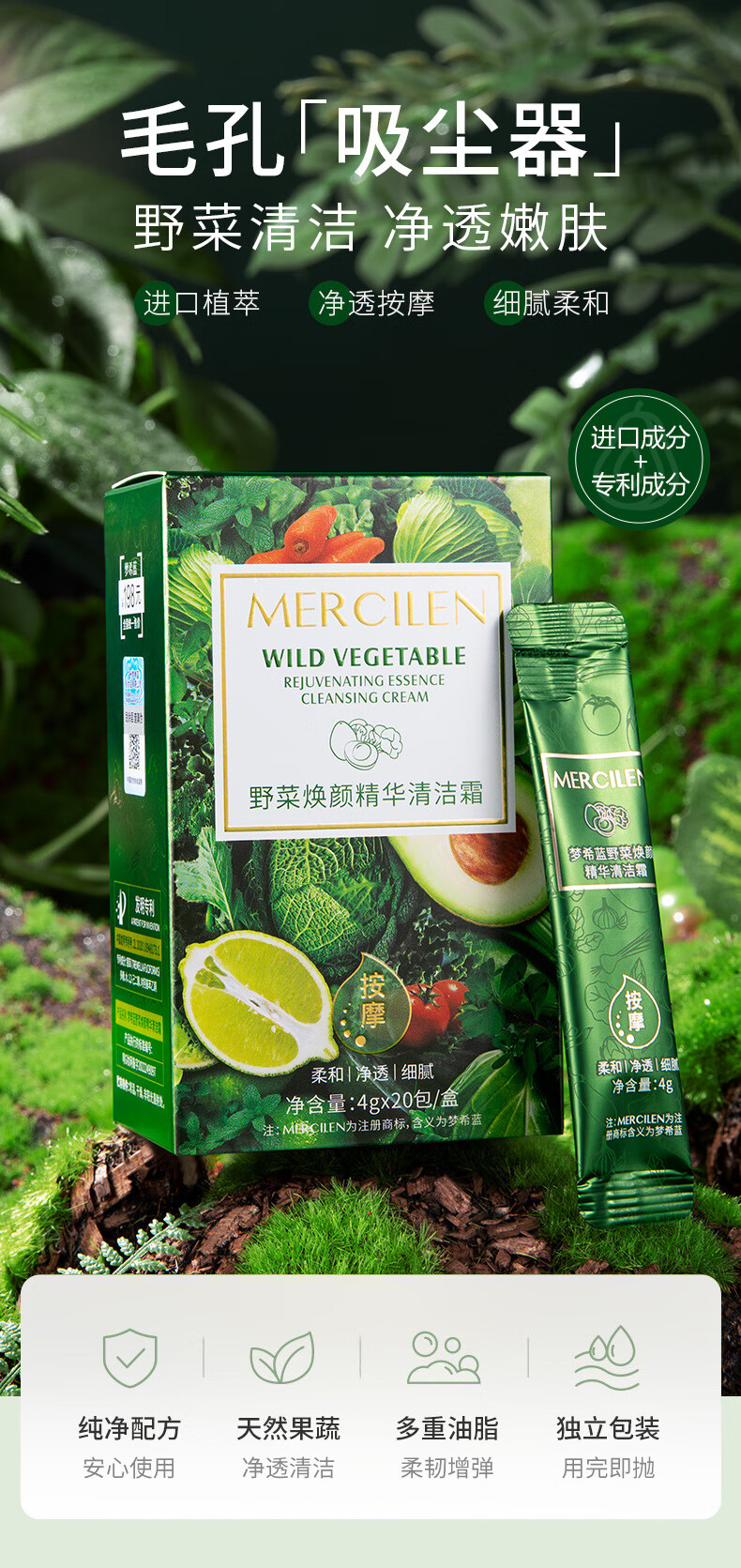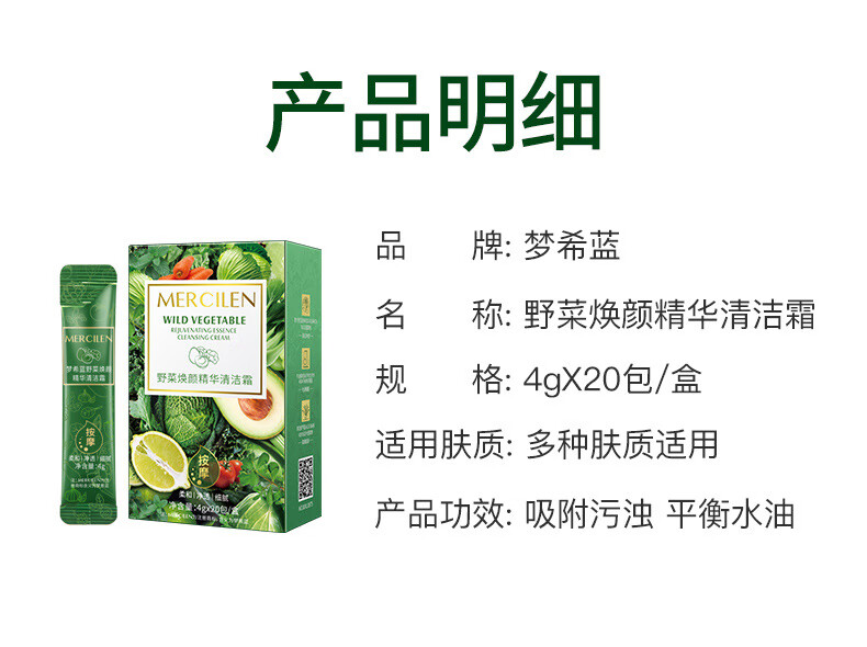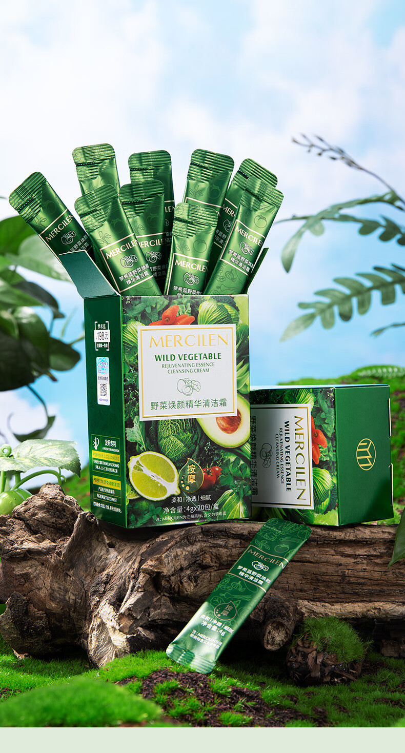 梦希蓝 野菜焕颜精华清洁霜面部保湿清洁毛孔污垢堵塞按摩膏补水洁面膏 5盒/100条【 4g*20包】