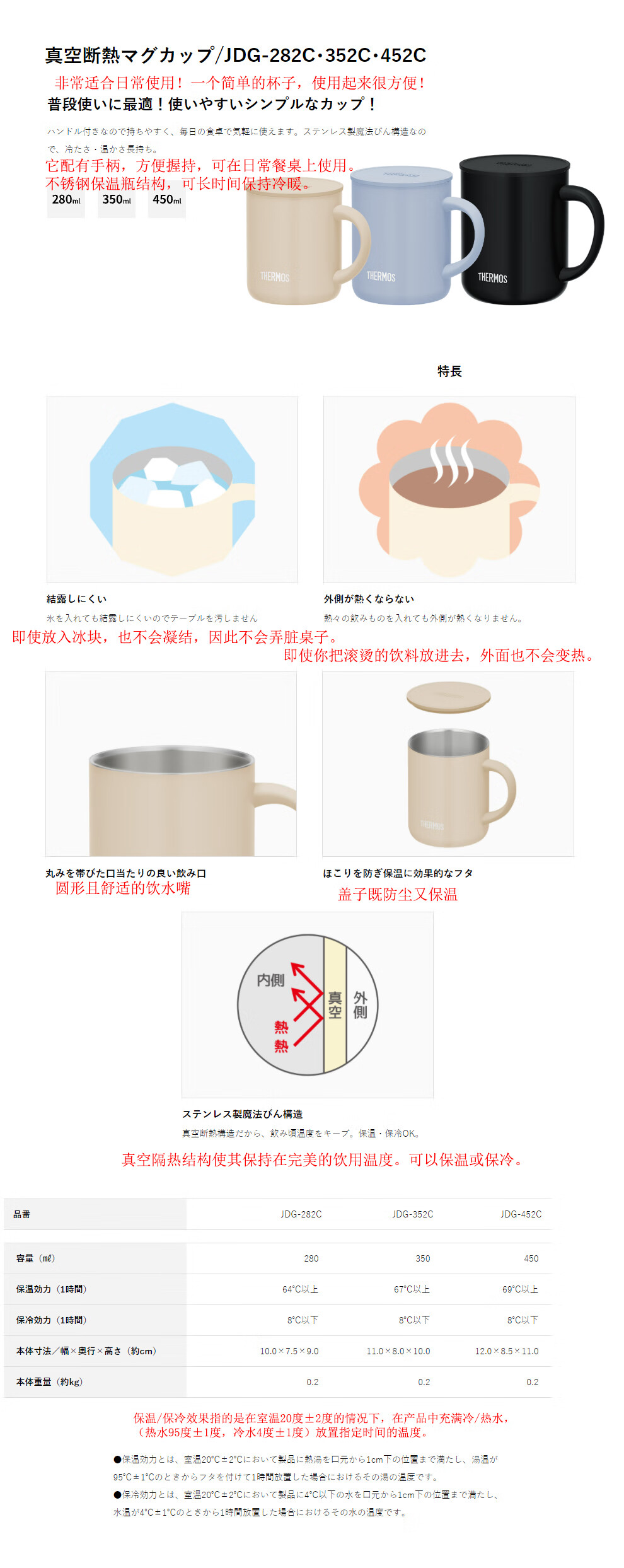 膳魔师(THERMOS)【日本直邮】真空不锈钢保温杯咖啡牛奶杯隔热保温保冷办公室水杯 JDG-452C SMB 450ml 【保温保冷】