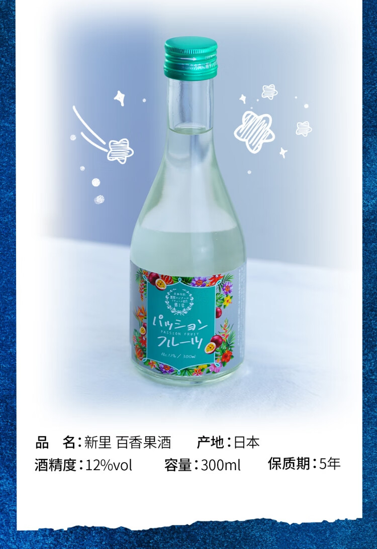 新里 古法纯酿百香果酒小甜酒 女士低度微醺酒 日本原装进口 12度 玩转聚会 300ml单支