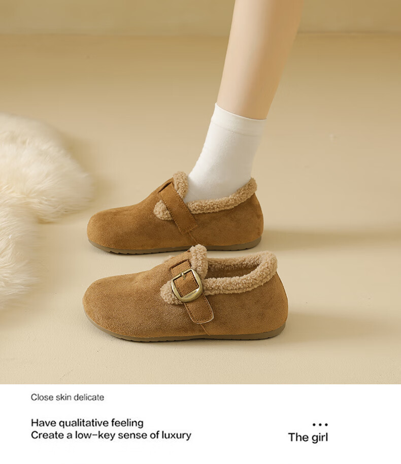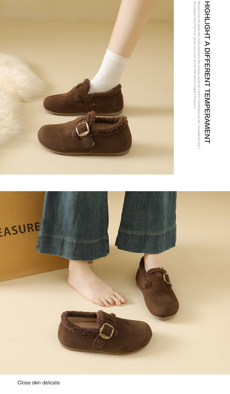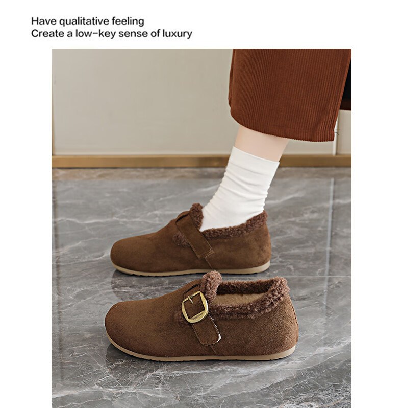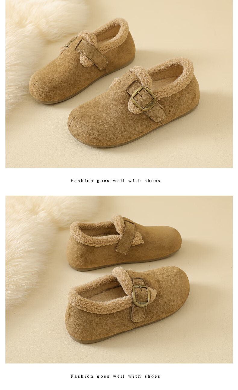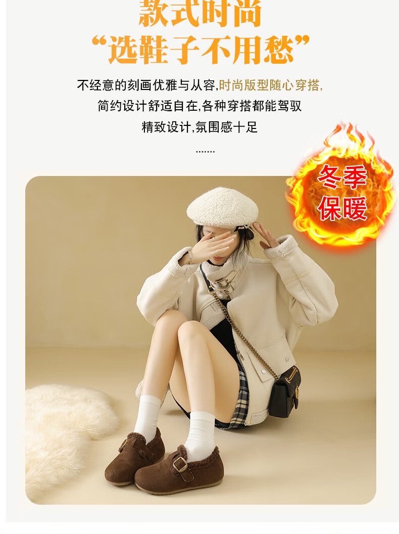 星期六加绒浅口棉鞋女2025新款秋冬季懒人一脚蹬保暖豆豆鞋软底圆头单鞋 棕色 【秋冬精品】一鞋两穿 37