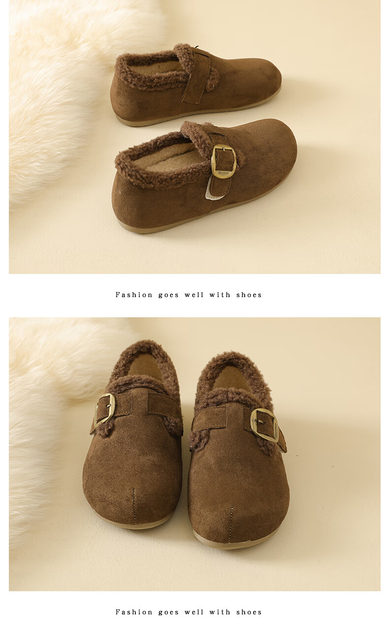稻草人(MEXICAN)大码41到43勃肯鞋女加绒雪地靴2026新款冬季一脚蹬内增高乐福棉鞋 咖啡色 41