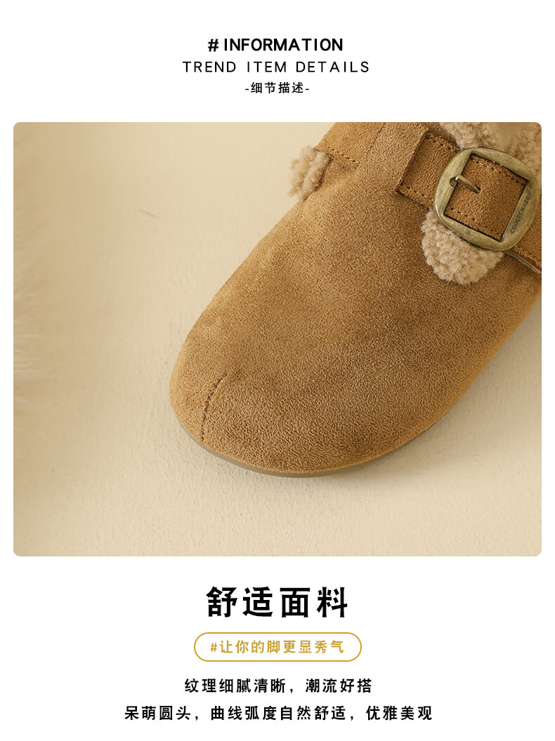 星期六加绒勃肯鞋女2025新款秋冬季软底毛毛鞋一脚蹬懒人保暖棉鞋豆豆鞋 黑色 【通勤百搭】跟高1.5cm 35