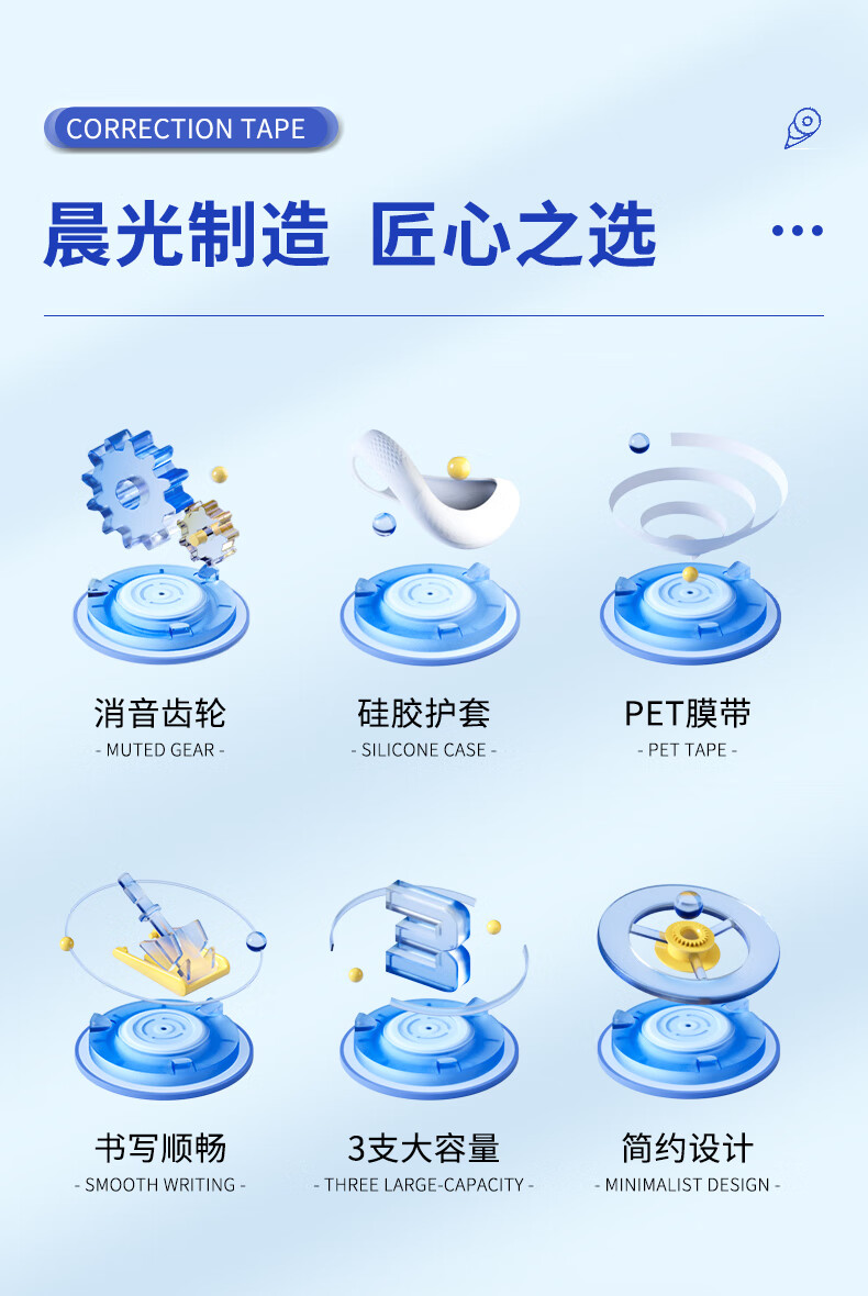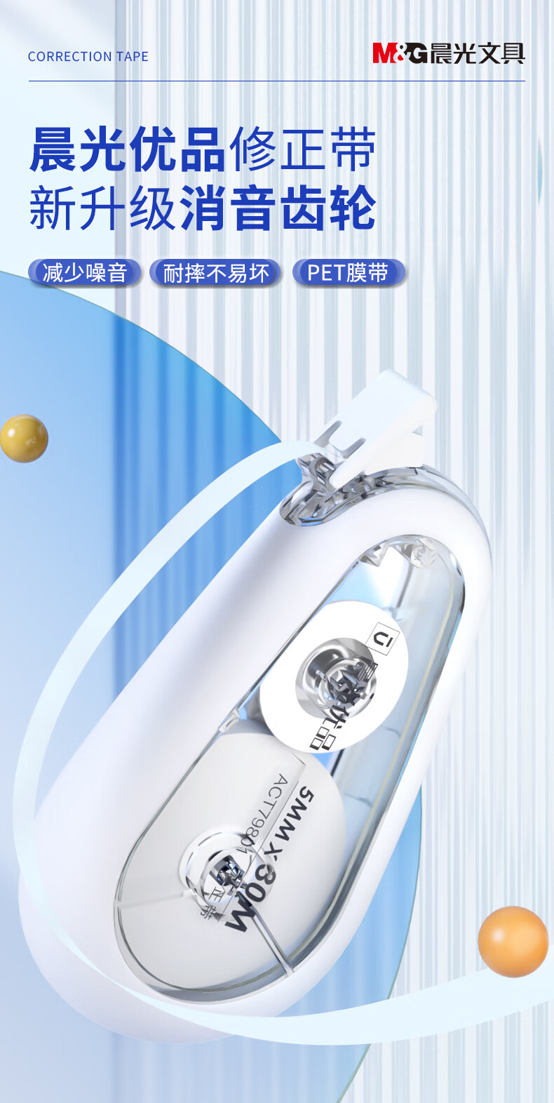 晨光(M&G)90米静音耐摔修正带 老师推荐涂改带课堂专用学生用品顺滑强遮盖改正带开学文具 30m*3支装