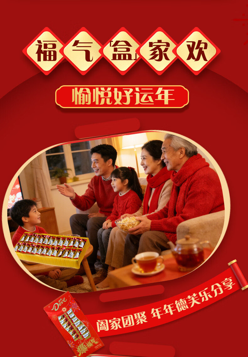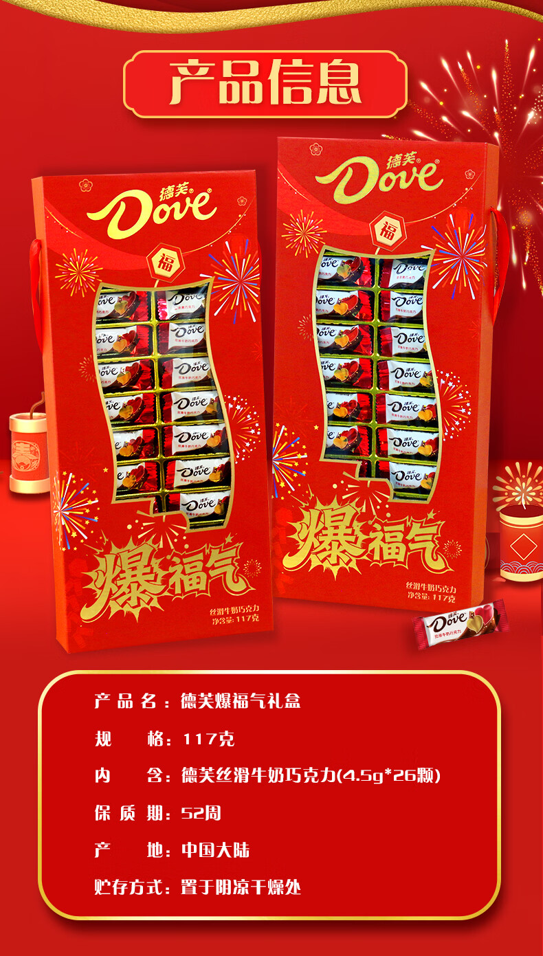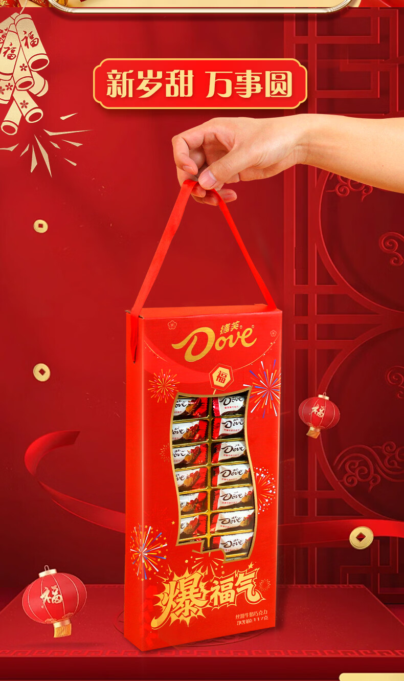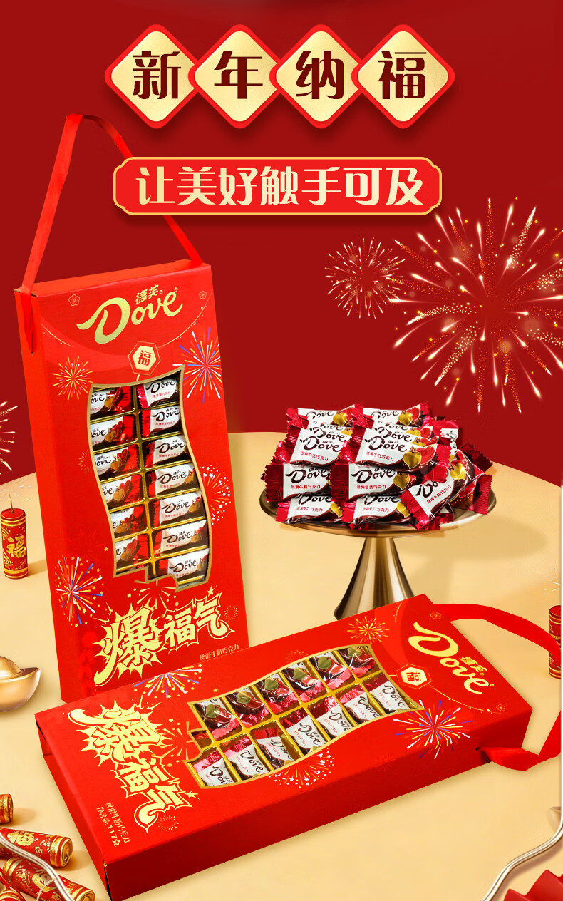 德芙(Dove)巧克力糖果礼盒新年礼物年货生日礼物女生老婆女友零食tzb 德芙爆福气年货礼盒丝滑牛奶26粒*2盒