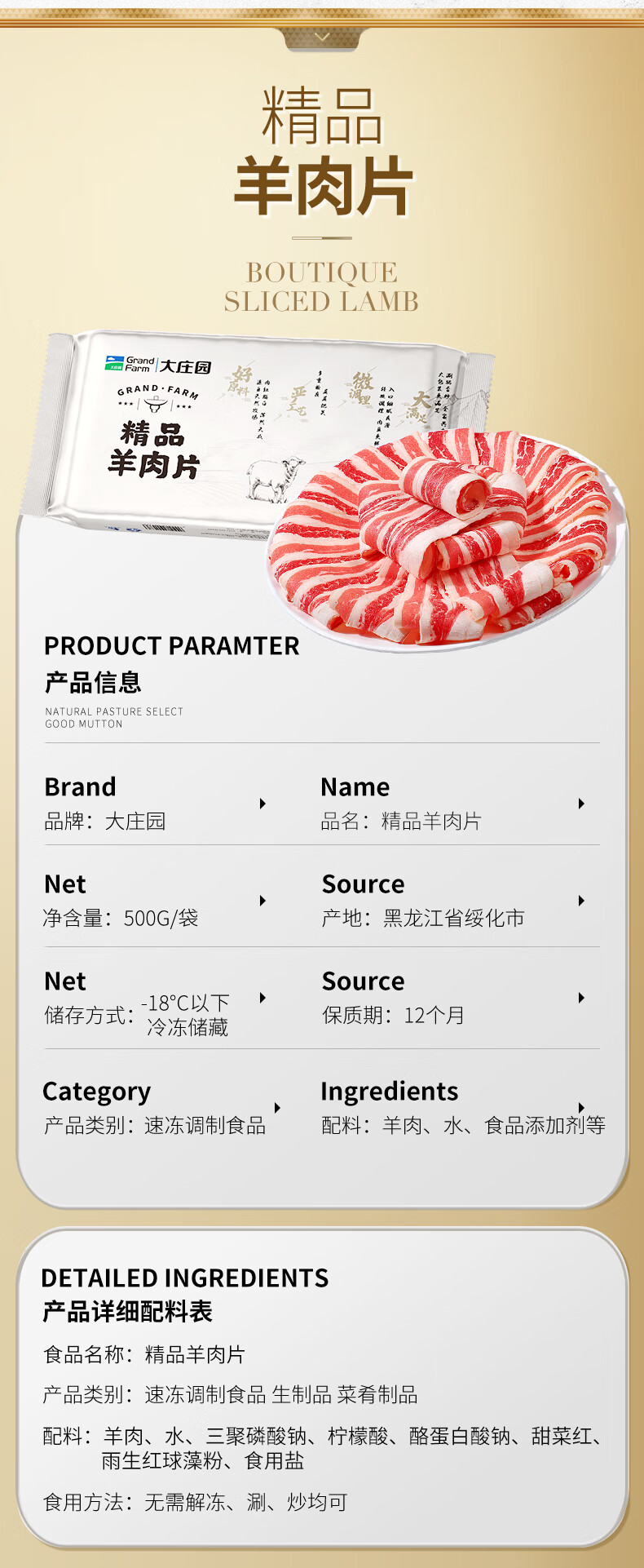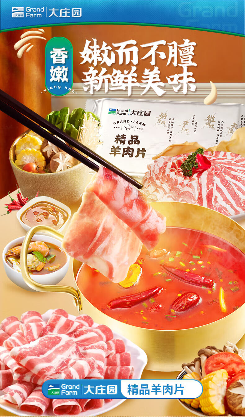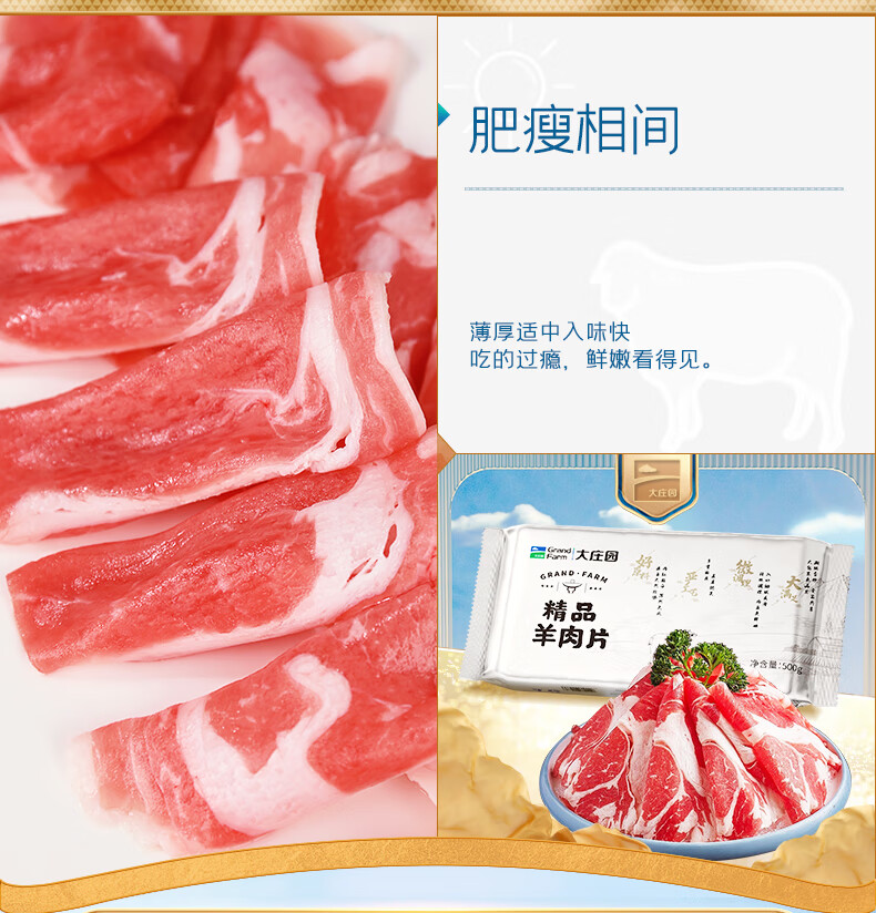 大庄园新西兰羊肉片卷1斤【欧盟认证】涮肉火锅食材 冷冻羊肉卷送礼佳品
