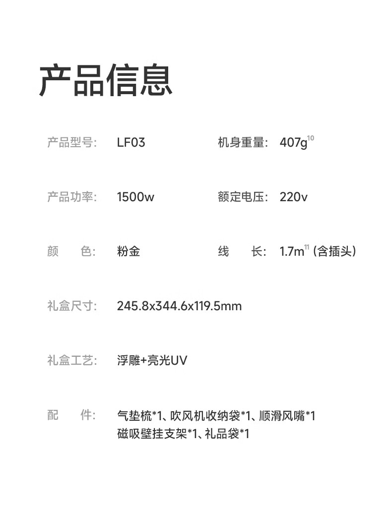 徕芬高速吹风机 速干家用电吹风 负离子护发吹风筒 新年礼物 粉金礼盒