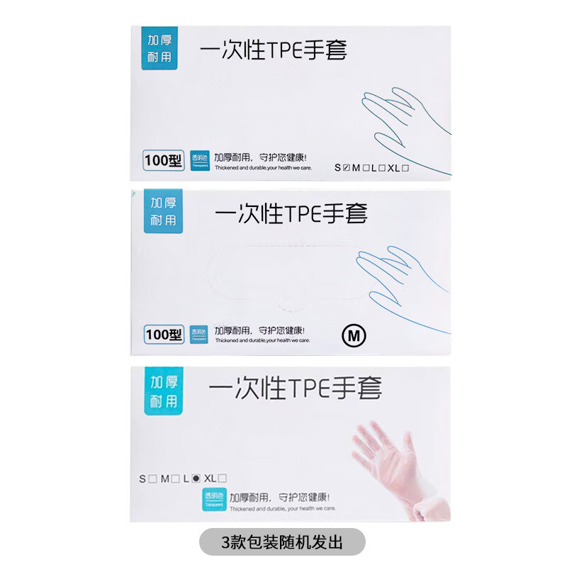 JEPOO清洁TPE手套餐饮厨房美容透明防油防水 TPE100只装*3盒 M码