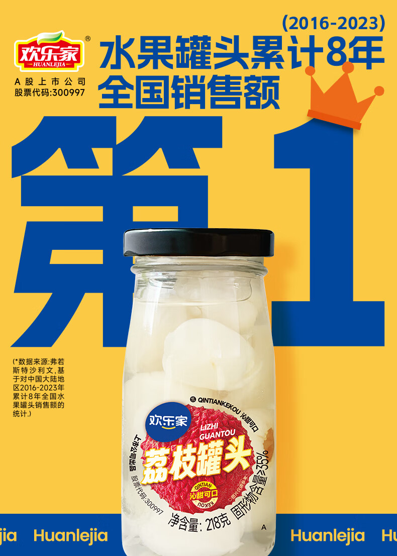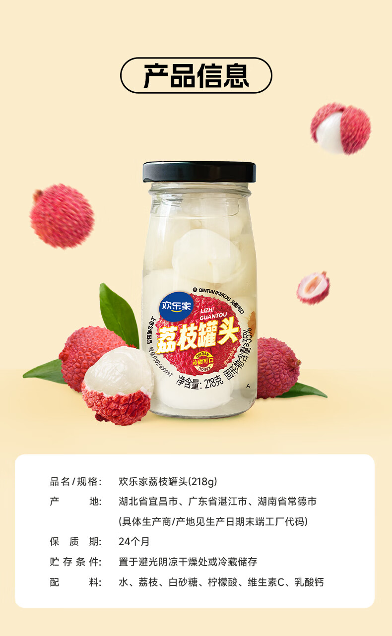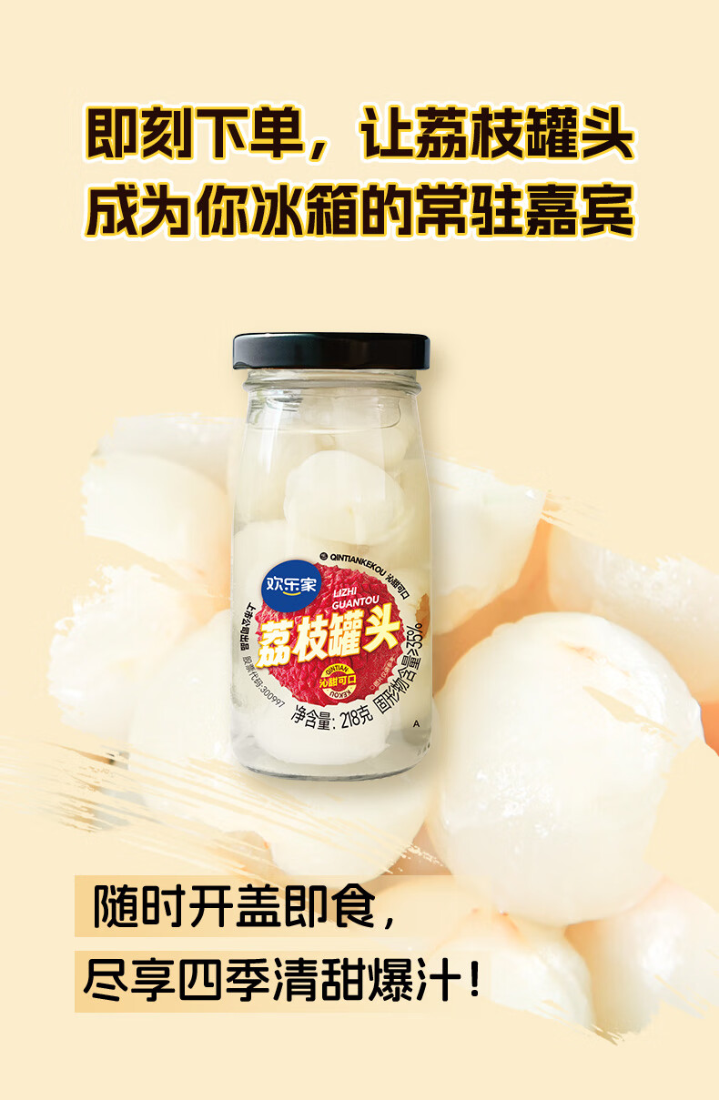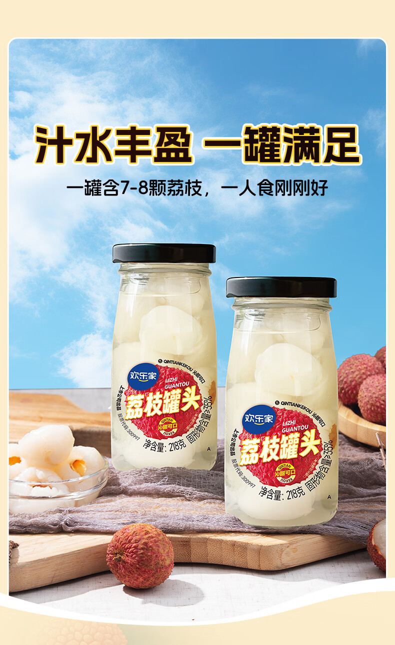 欢乐家 荔枝罐头 糖水荔枝黄桃橘子果肉水果罐头218g 休闲零食 年货送礼 荔枝罐头218g*6瓶