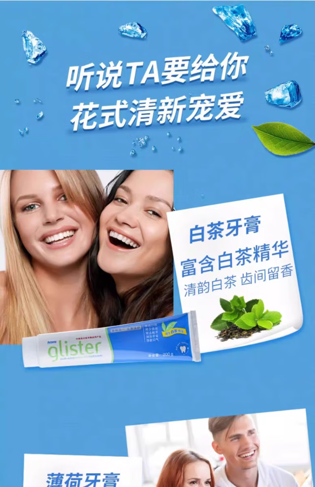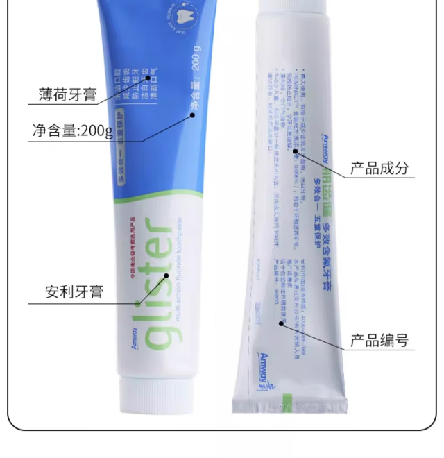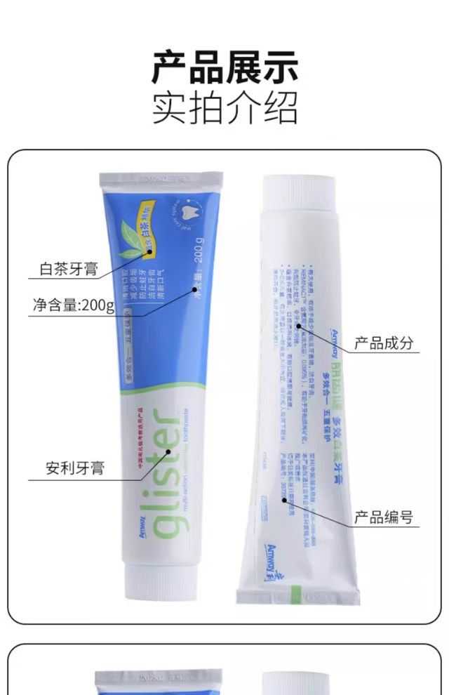 安利牙膏丽齿健多效薄荷白茶正品含氟防蛀美白清新口腔200g(老款) 老款白茶2支+老款薄荷2支