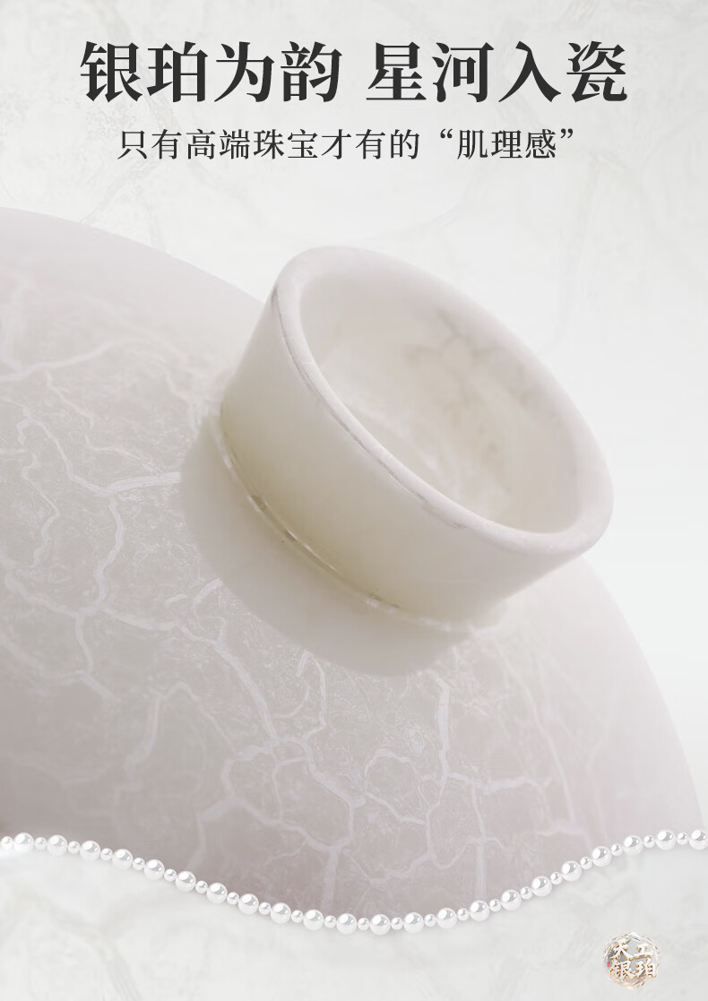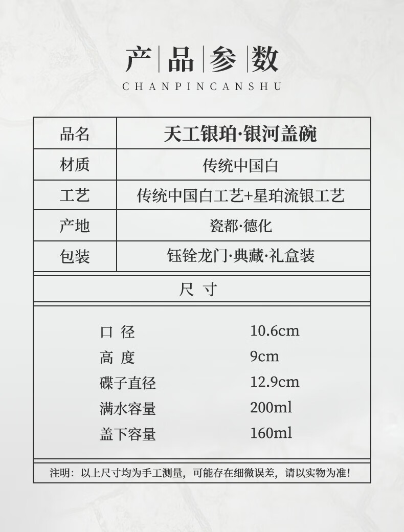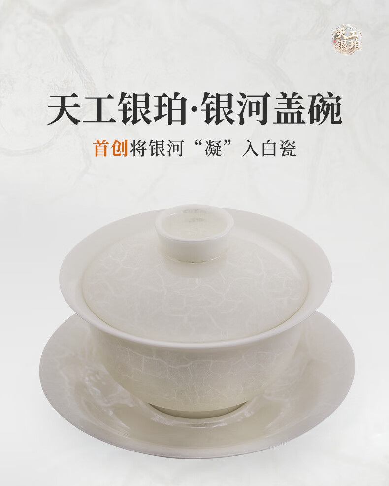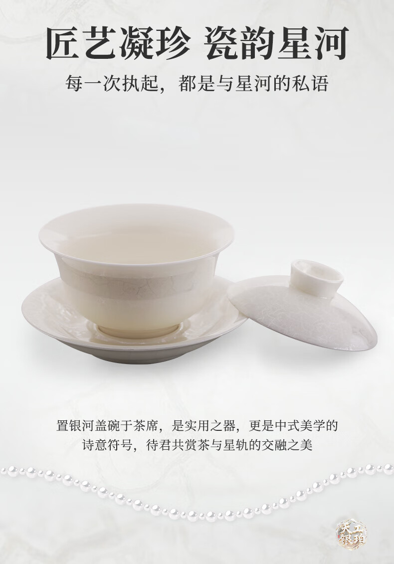 钰铨龙门 天工银珀银河盖碗 首创星珀流银德化传统中国白纯手工三才盖碗 天工银珀银河盖碗(首创收藏版)