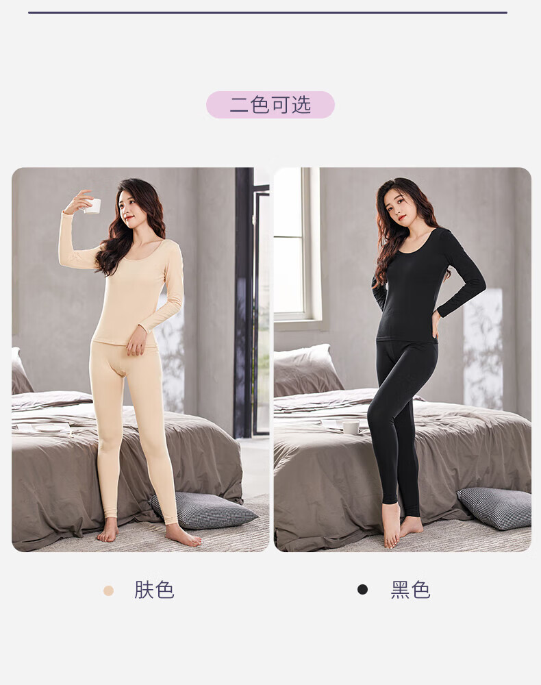 芬腾保暖内衣女薄款秋衣秋裤套装少女性感纯色修身加大码打底衫 肤色 M 建议:90-110斤