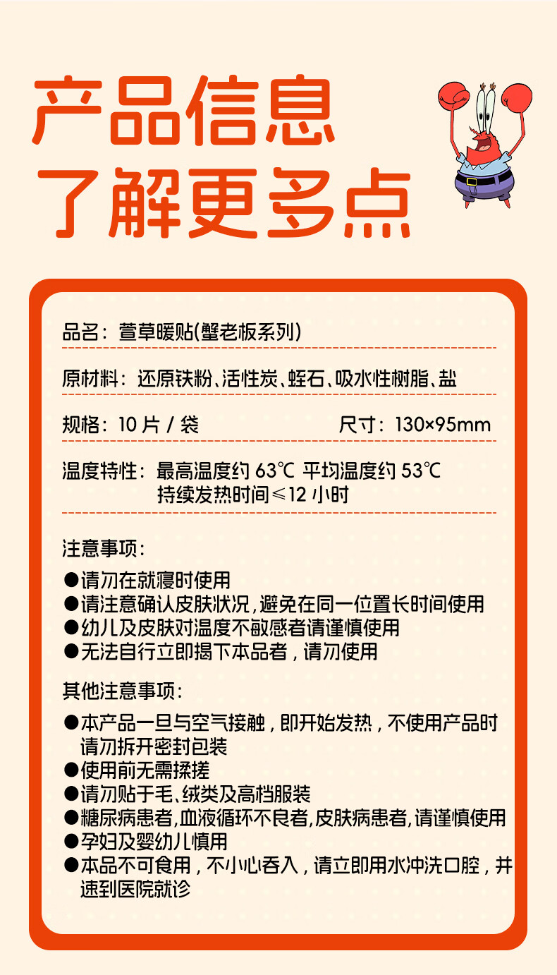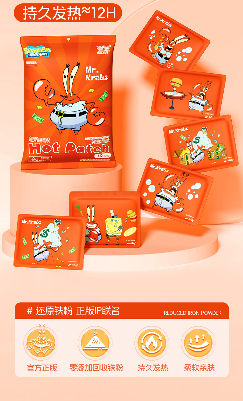 萱草【爆款联名】暖宝宝贴自发热贴长效持久暖贴大姨妈暖身暖手热敷贴 海绵宝宝暖身贴 20片装【持续发热12h】