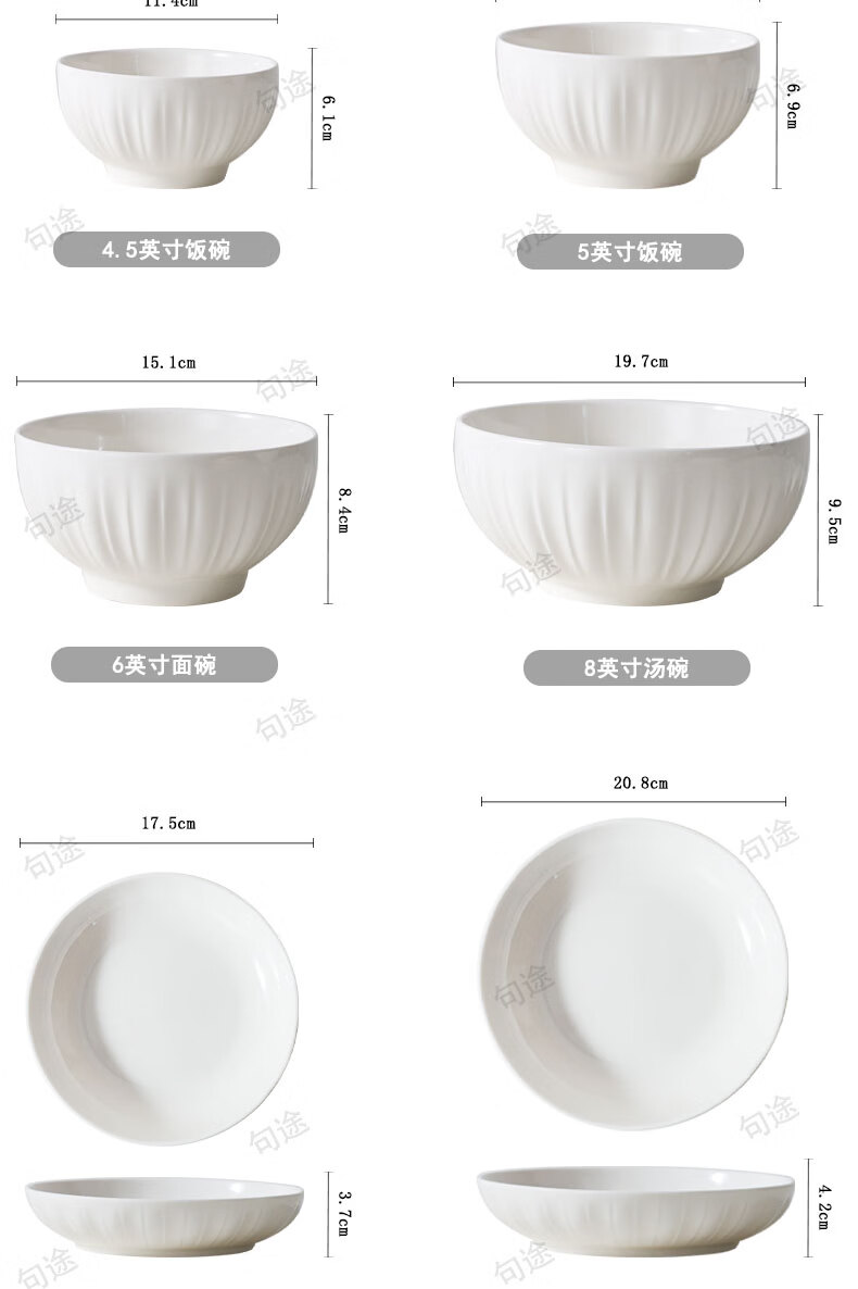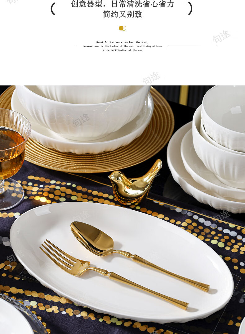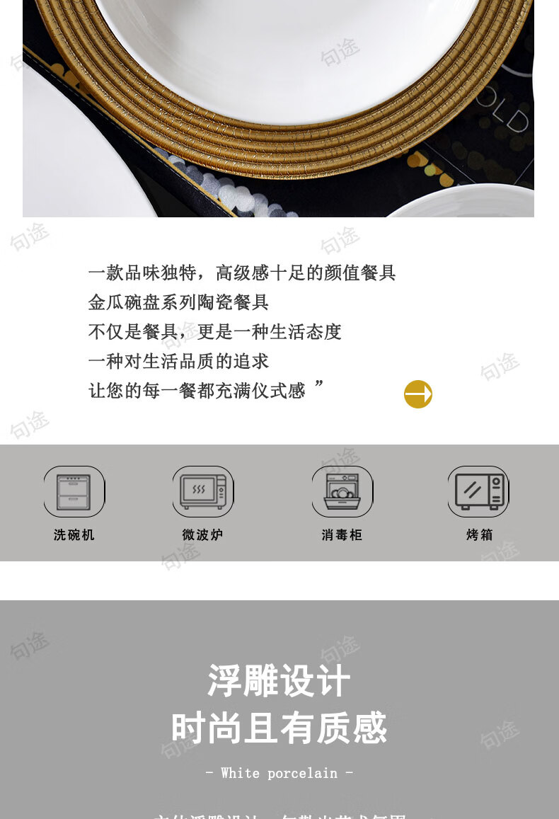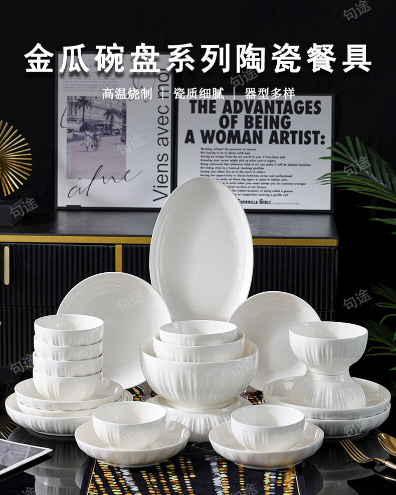 几句纯白色浮雕金盏花釉下彩系列陶瓷餐具套装家用饭碗菜盘高温陶瓷 纯白瓷浮雕金盏花 16件套 (竹筷子)
