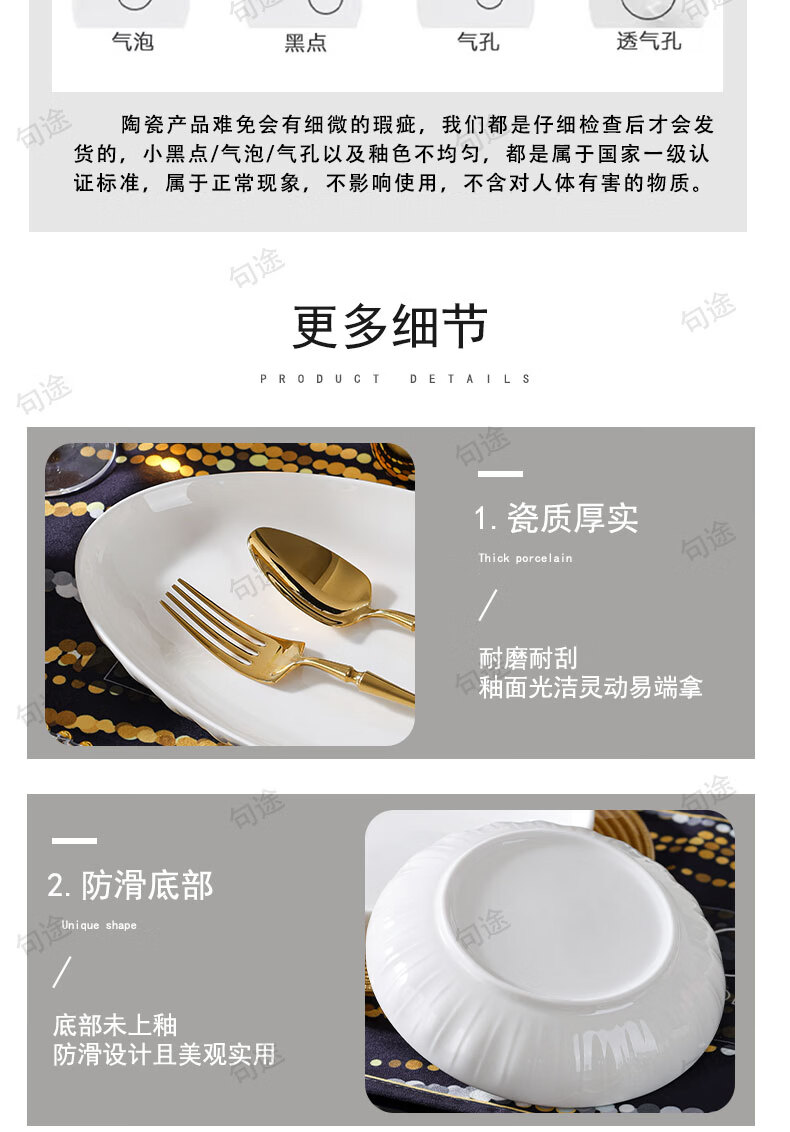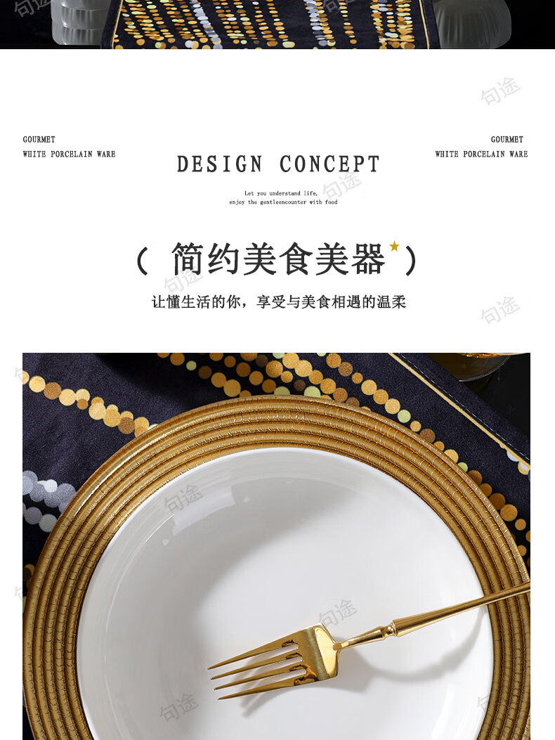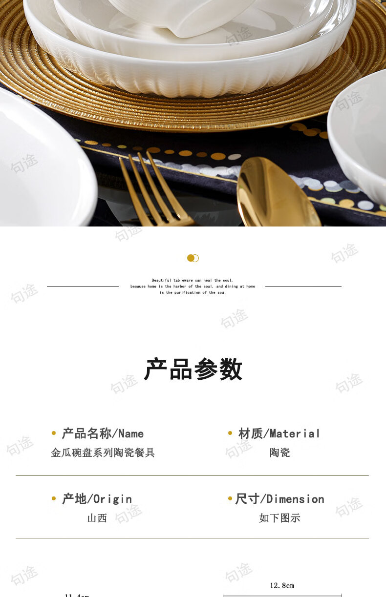 几句纯白色浮雕金盏花釉下彩系列陶瓷餐具套装家用饭碗菜盘高温陶瓷 纯白瓷浮雕金盏花 16件套 (竹筷子)