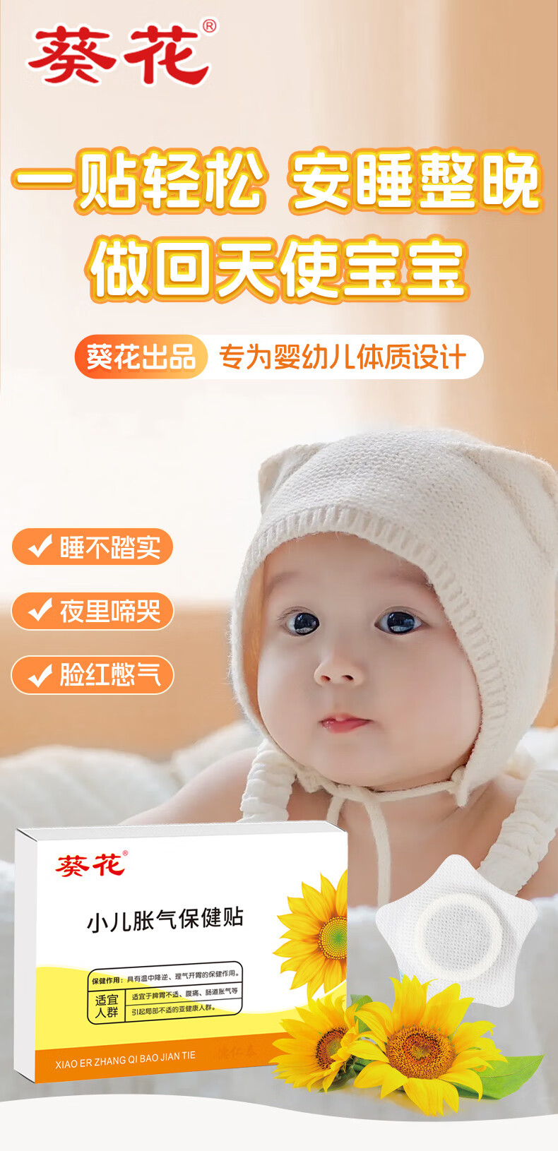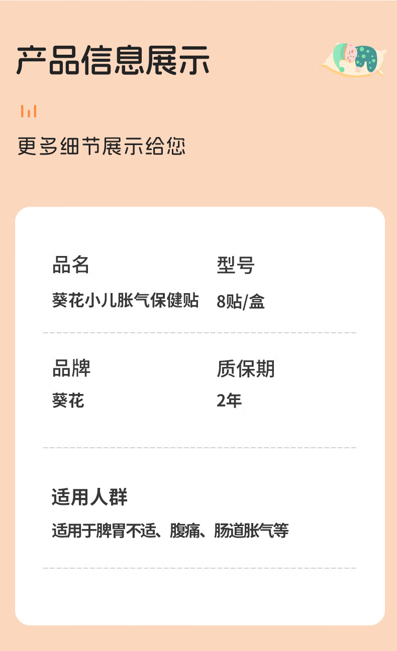 葵花胀气贴婴儿0-3个月新生儿二月闹肠绞痛宝宝防胀气小儿肠胀气贴 胀气贴 8贴*1盒