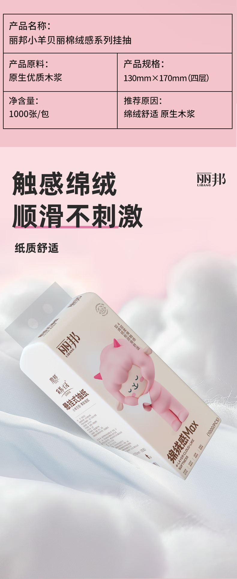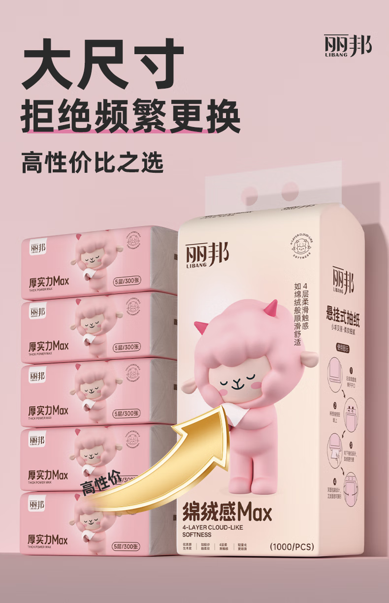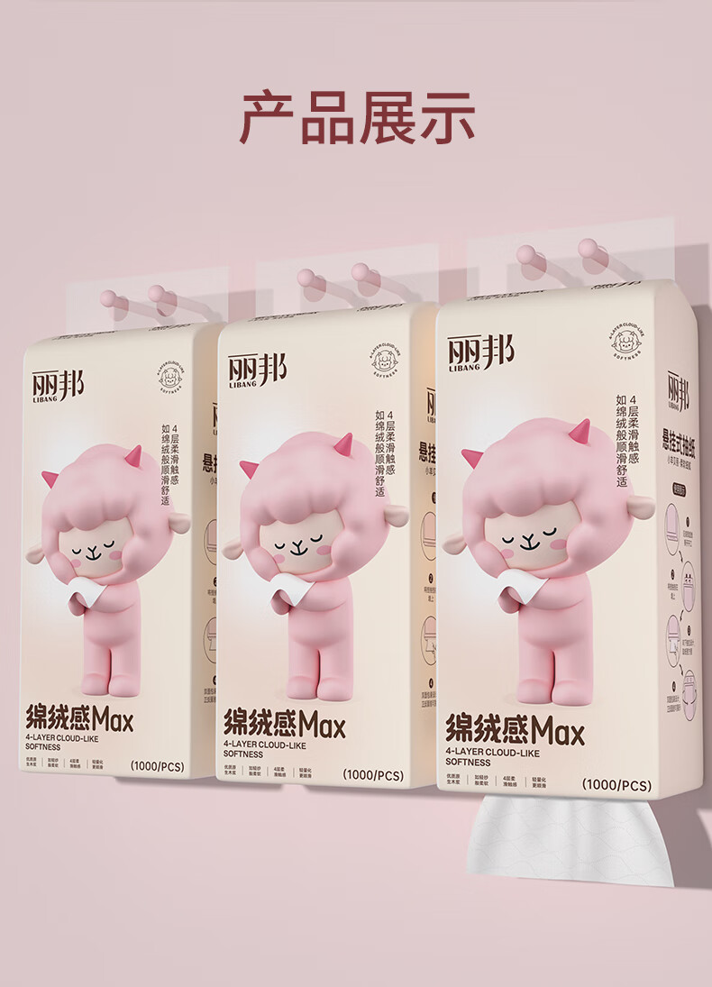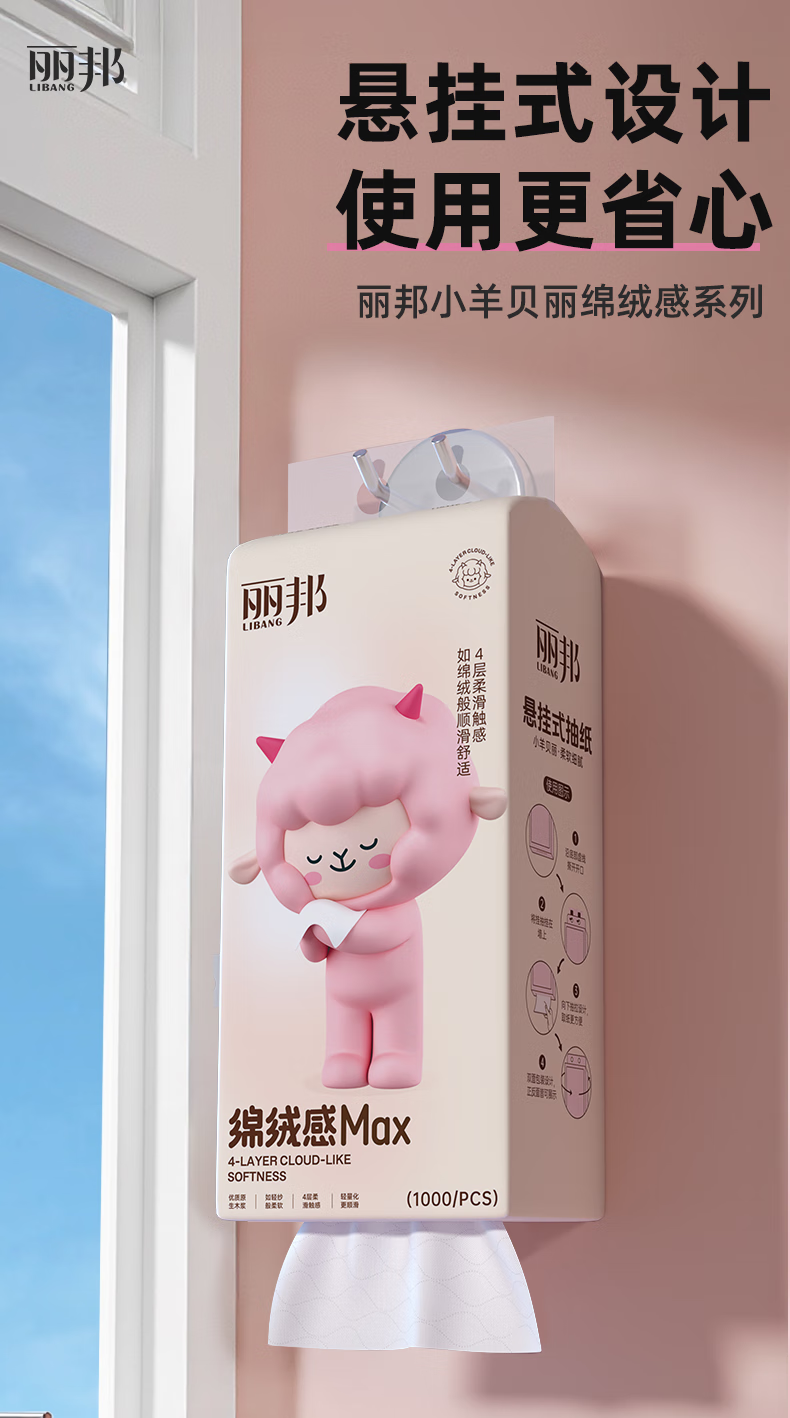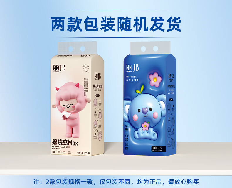 丽邦1000张挂抽悬挂式大包抽纸 原生木浆四层加厚擦手纸 4层 250抽 * 1提